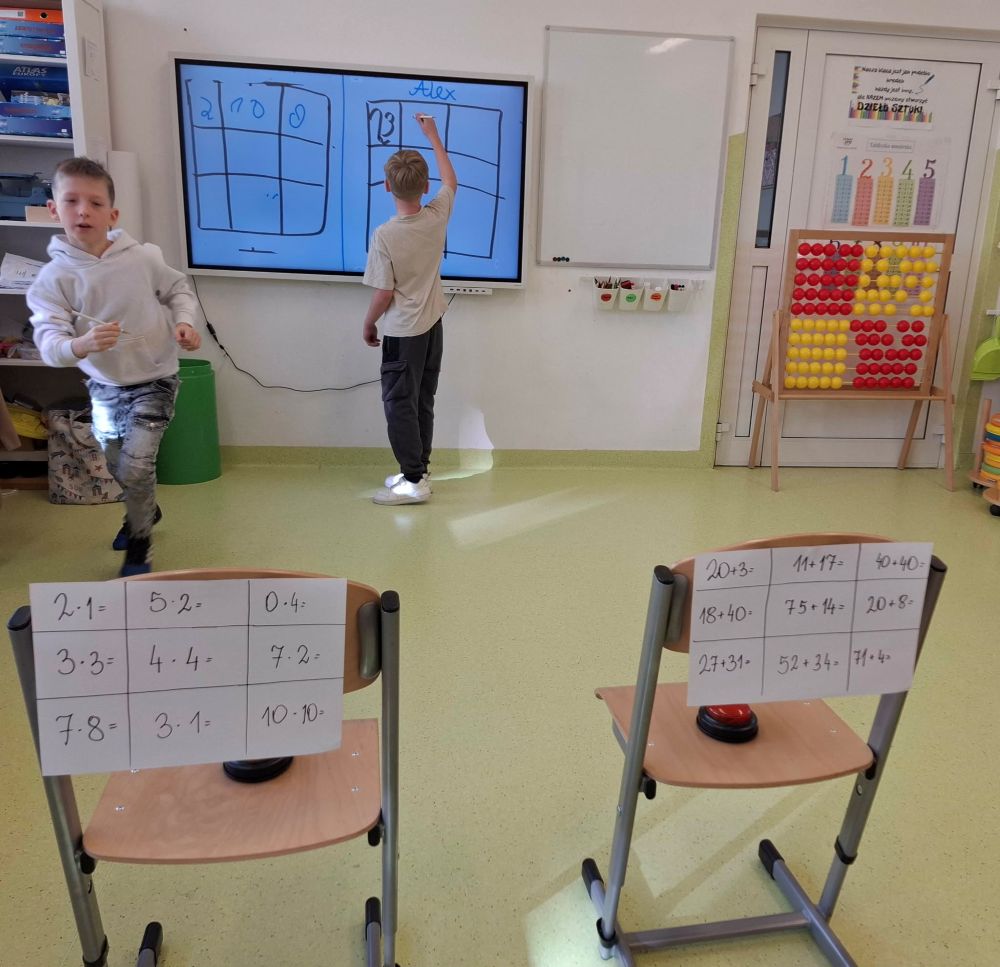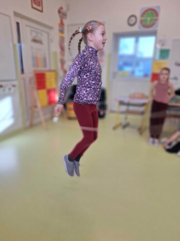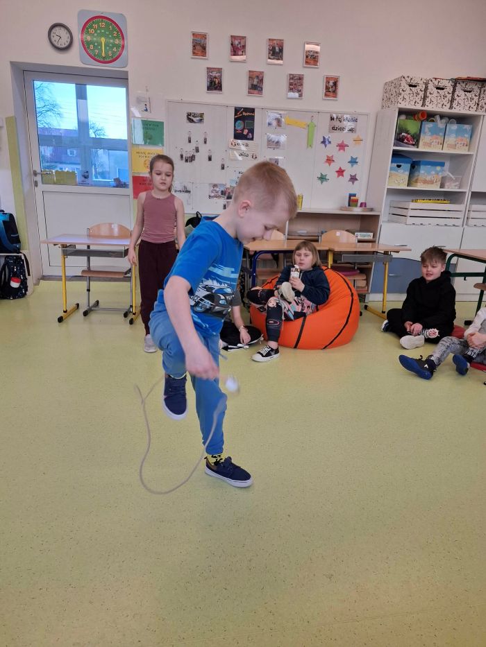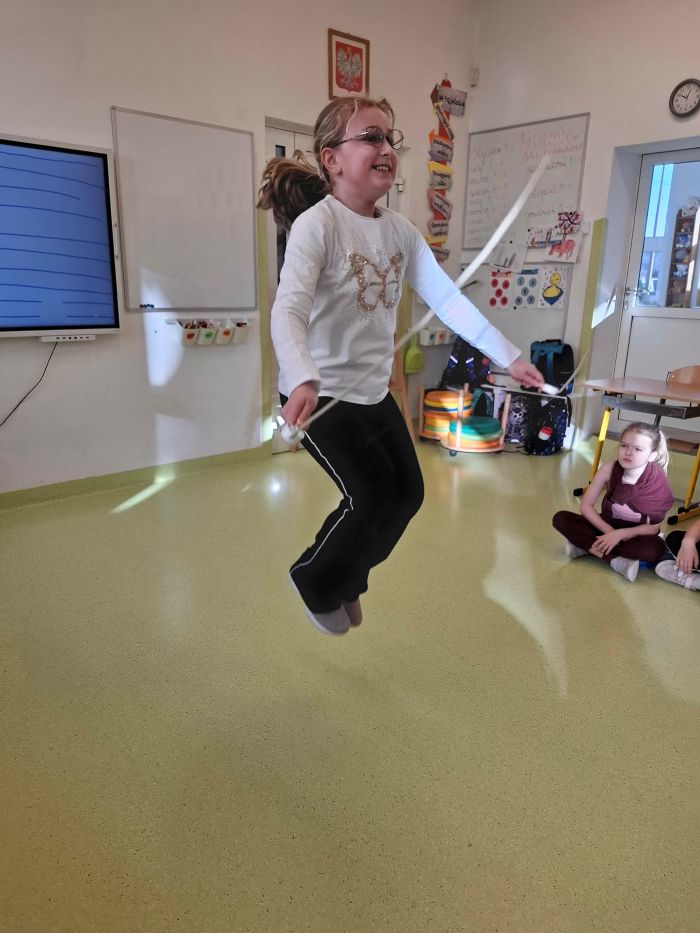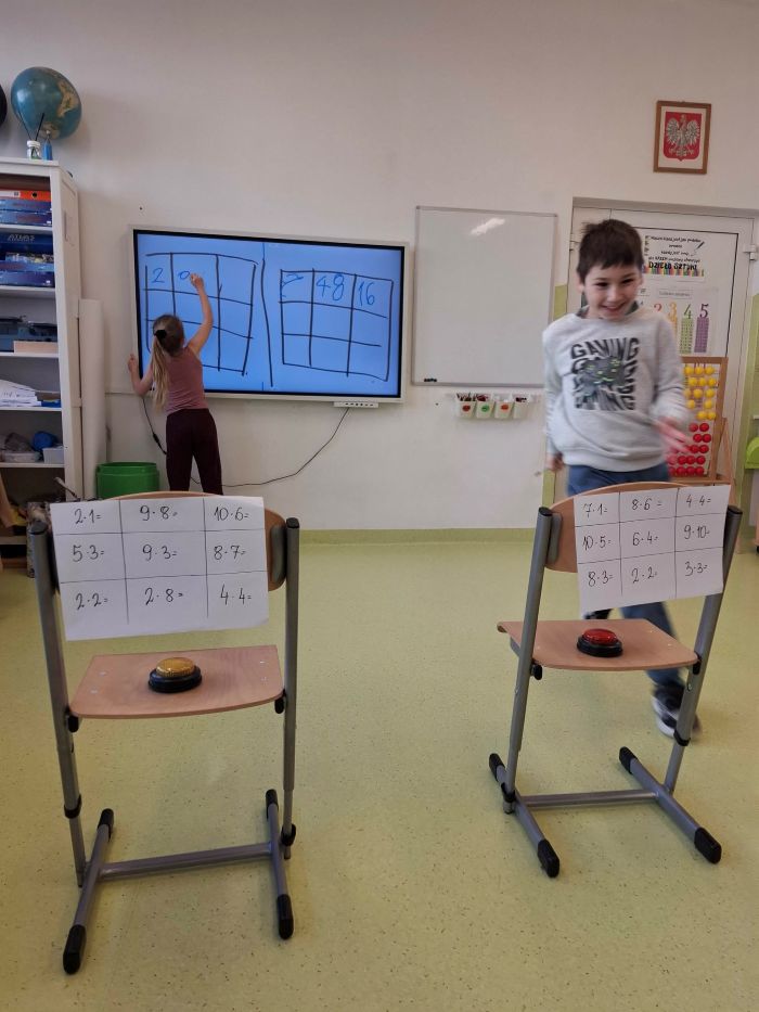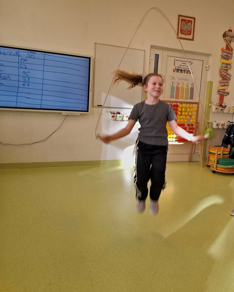 Czy nauka musi się odbywać tylko i wyłącznie przy ławce? Ostatnie zajęcia drugoklasistów pokazały, iż łączenie aktywności fizycznej i zabawy może być ciekawą lekcją MATEMATYKI! Tworząc w klasie odpowiednią przestrzeń uczniowie utrwalali matematykę na "pełnych obrotach". Skacząc przez skakankę utrwalali dodawanie w zakresie 100, tworzyli pytania i obliczenia matematyczne do danych zawartych w tabelce, a następnie poprzez ruch utrwalali znajomość tabliczki mnożenia. Emocji było mnóstwo, a poprzez aktywność fizyczną i naukę drugoklasiści: