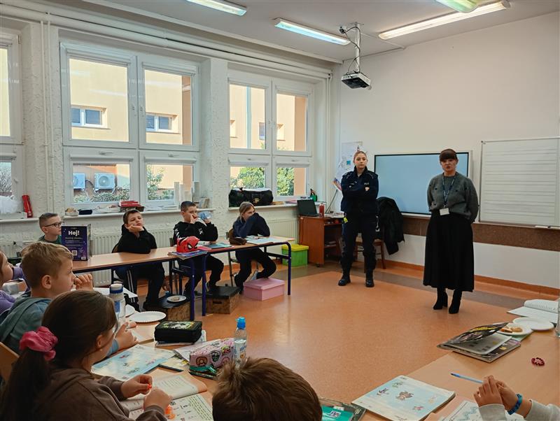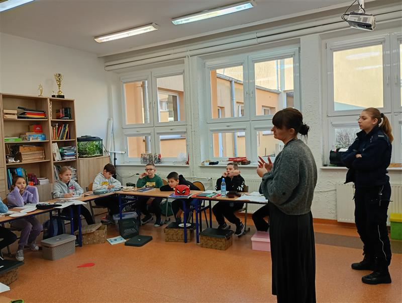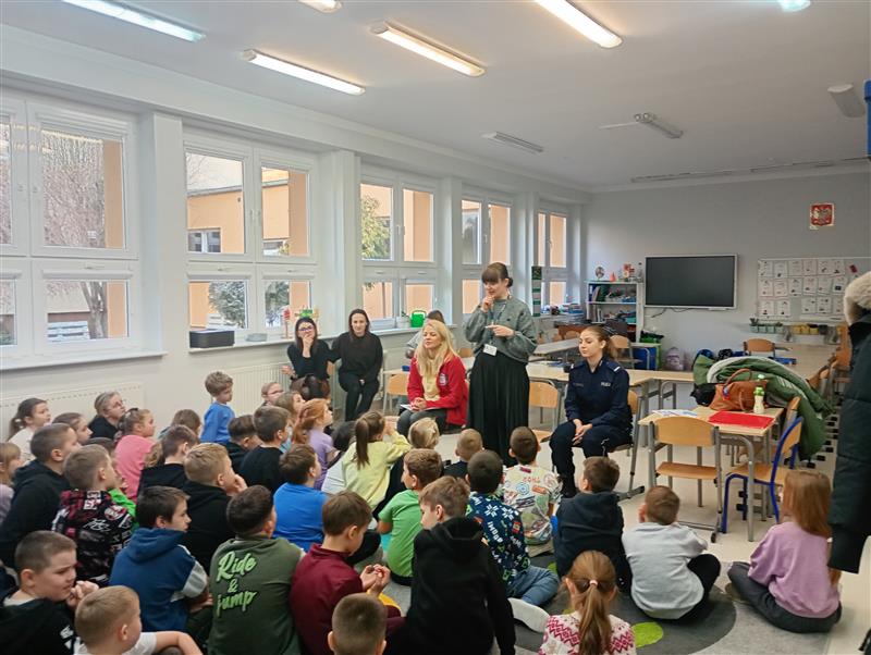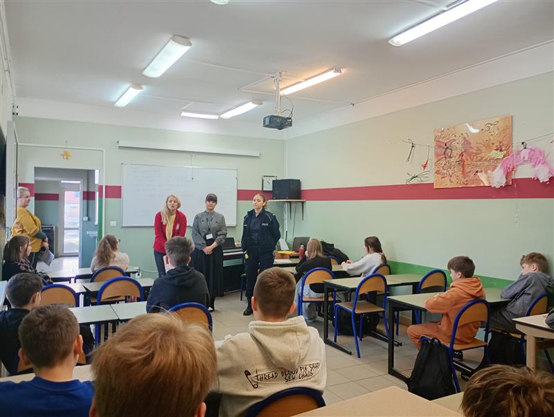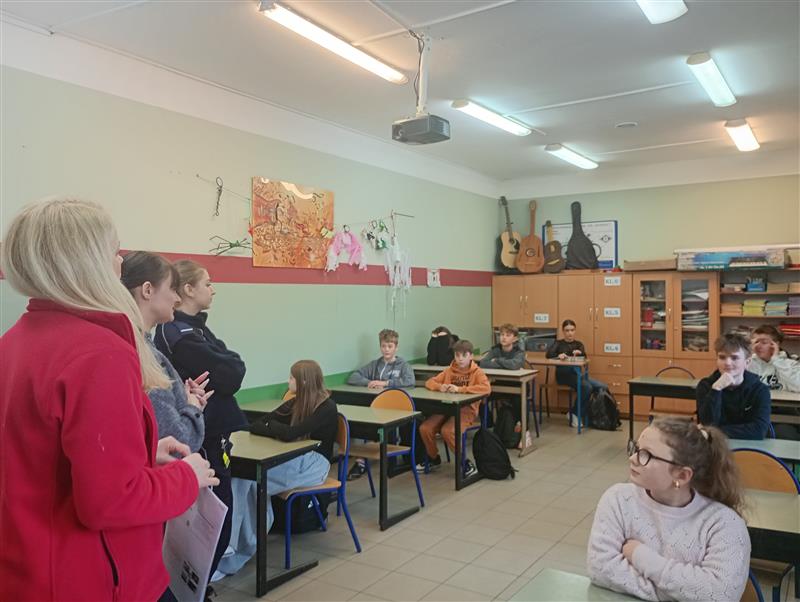 22 stycznia w naszej szkole gościliśmy panią M. Pyzik ze Stacji Sanitarno-Epidemiologicznej w Goleniowie oraz panie P. Stawirej i L. Pawlaczyk z Komendy Powiatowej Policji w Goleniowie. Goście przeprowadzili prelekcje dla uczniów różnych klas. Z klasami VI spotkali się w ramach Wojewódzkiego Programu „Porozmawiajmy o zdrowiu i nowych zagrożeniach”, omawiając tematykę substancji psychoaktywnych, w tym nowych narkotyków, i wskazując, jak unikać zagrożeń i dbać o zdrowie. Z młodszymi uczniami – z klas I-III – rozmawiali o zasadach bezpieczeństwa podczas ferii zimowych. Natomiast w klasie III b panie z KPP poruszały kwestie przemocy oraz prawidłowych relacji rówieśniczych. Spotkania miały na celu zwiększenie świadomości uczniów na temat zagrożeń oraz wsparcie ich w podejmowaniu bezpiecznych i odpowiedzialnych decyzji.
