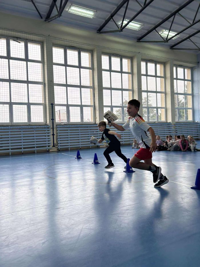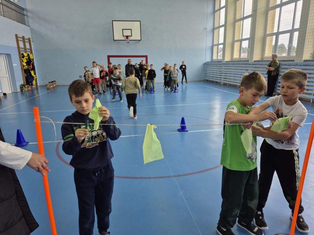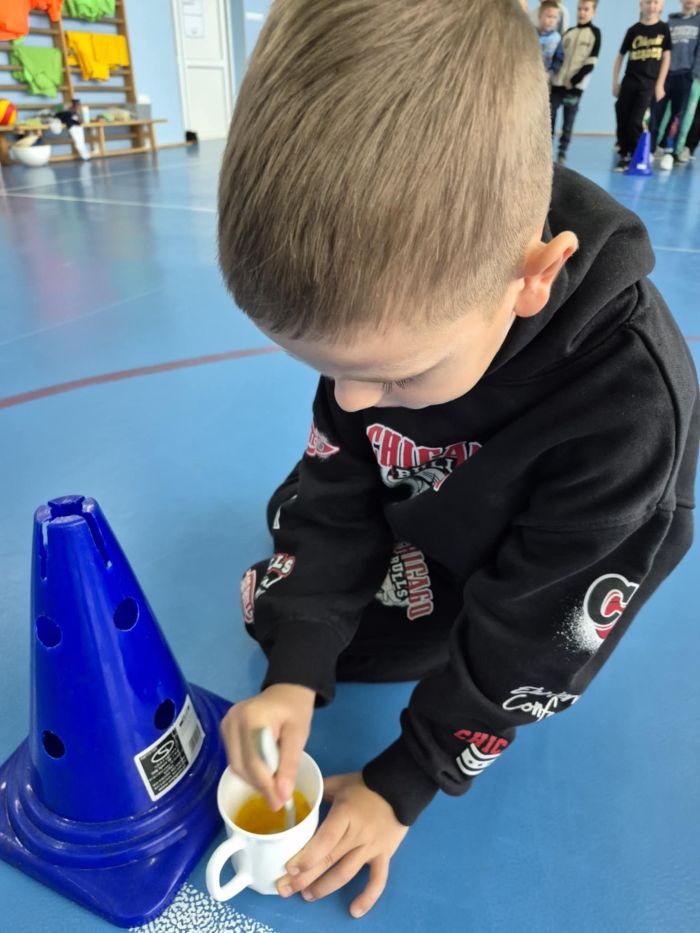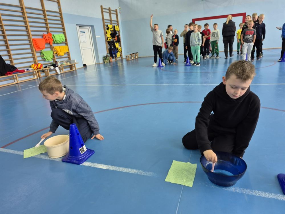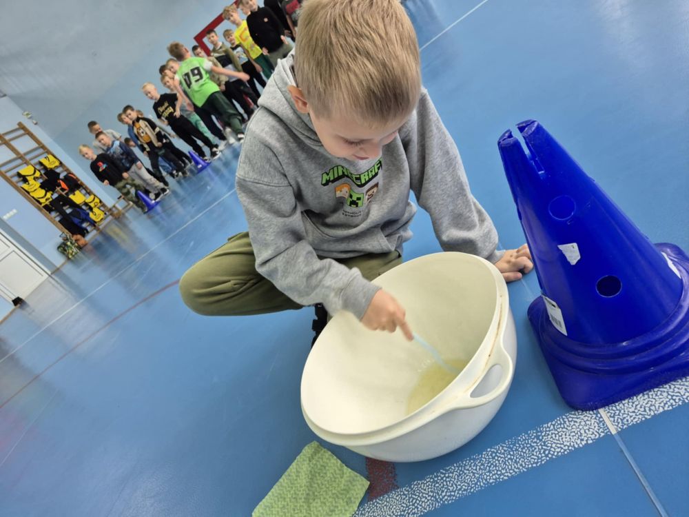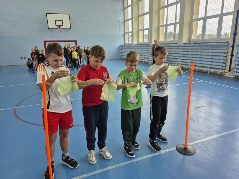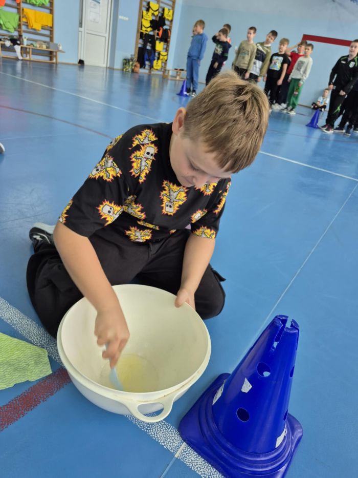 Klasy 1–3 spędziły ten dzień pełen śmiechu i zabawy podczas sportowych konkurencji. Chłopcy wzięli udział w nietypowych wyścigach, ćwiczyli wieszanie prania, ubijanie białka, robienie kogla-mogla czy noszenie na tacy. Wszyscy dali z siebie 100% i pokazali, że sport