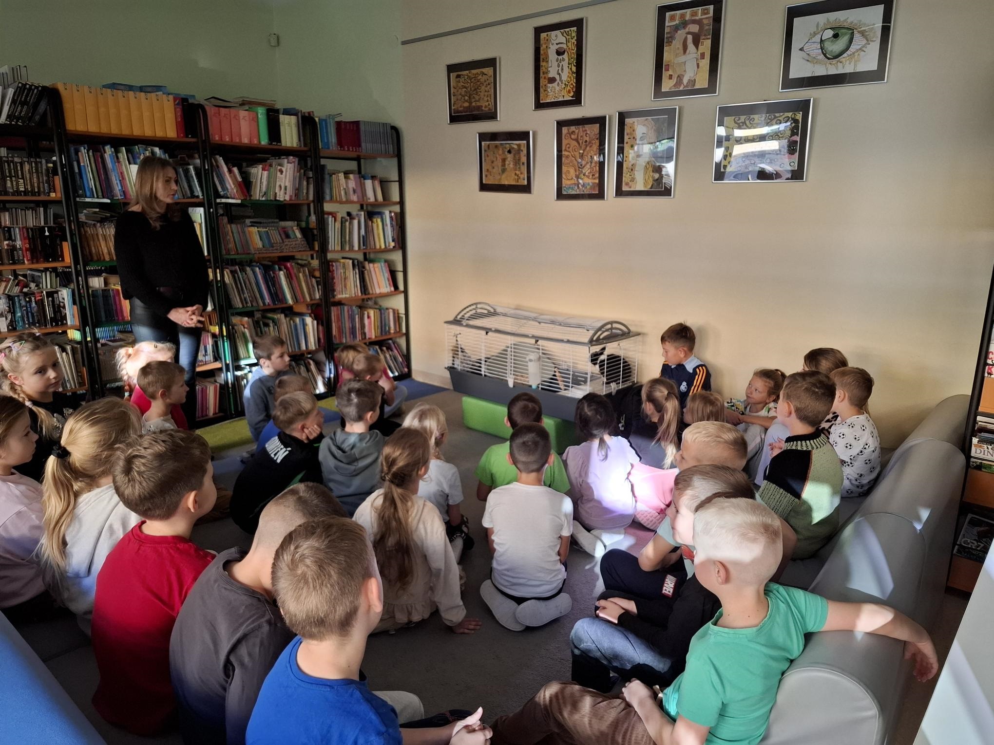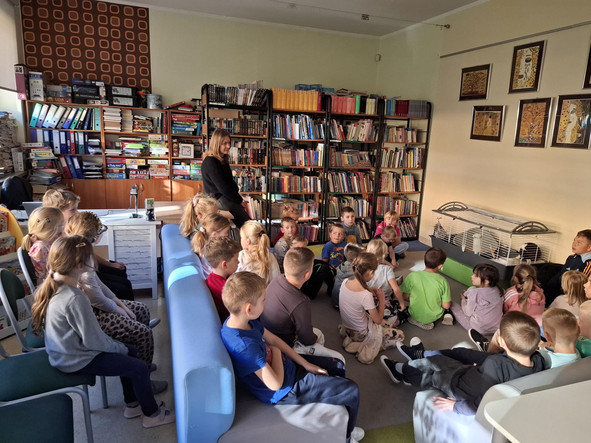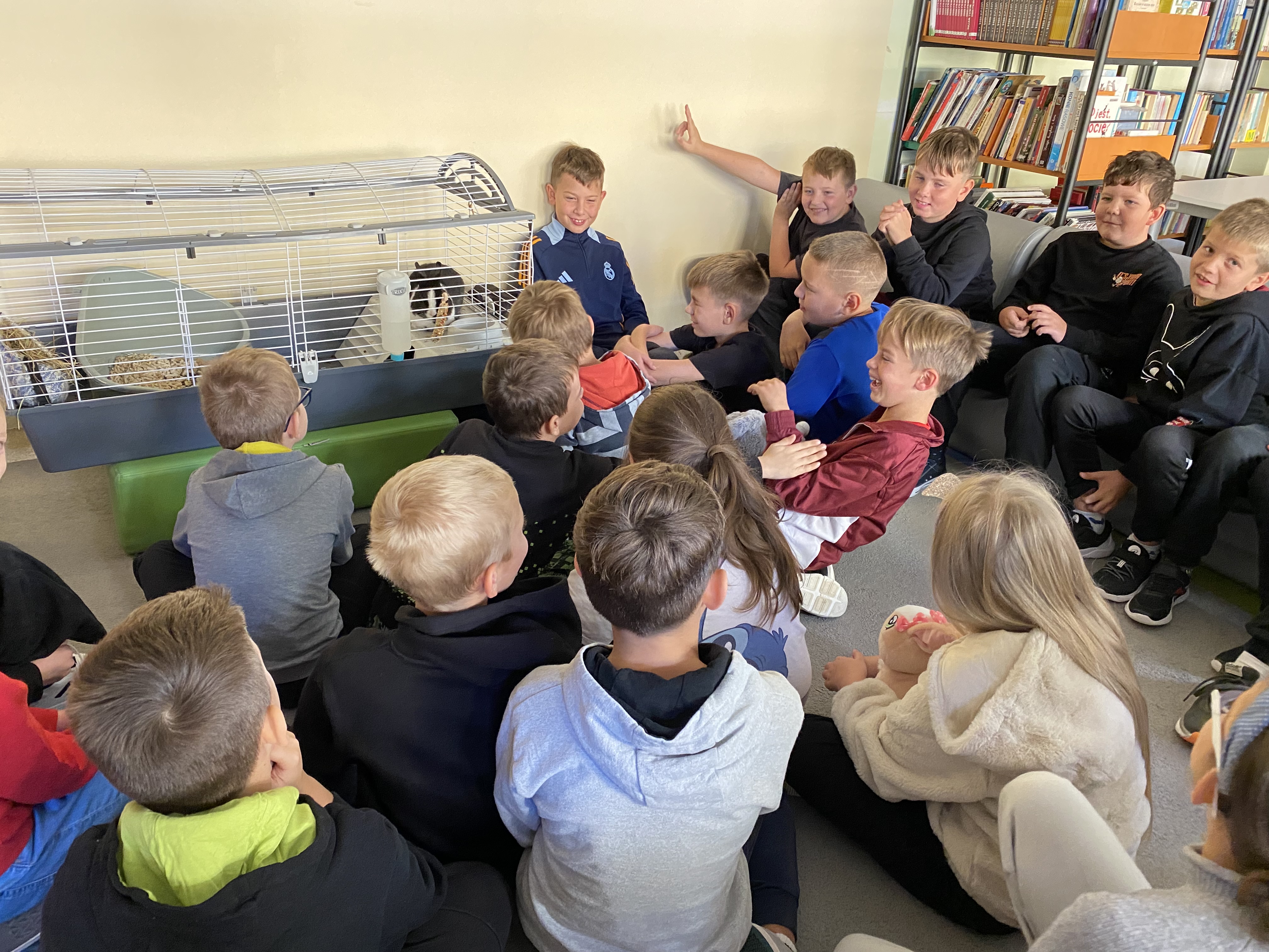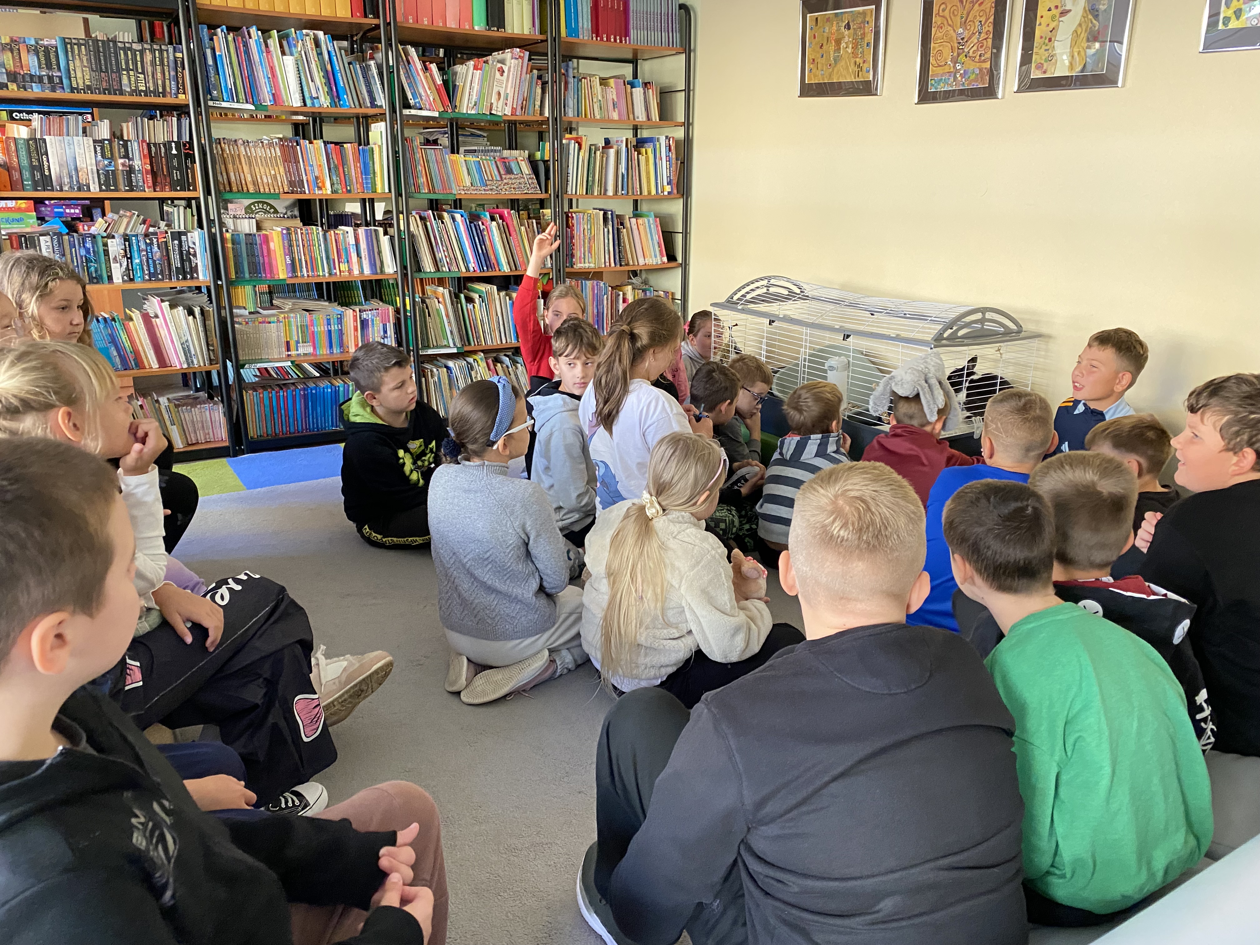 Była zabawa w poszukiwanie ciekawostek o tych zwierzątkach (wydawało się, że w zakamarkach korytarza ciężko będzie znaleźć karteczki z owymi ciekawostkami, ale nasze dzieci dysponują chyba szóstym zmysłem, albo króliczym węchem, bo ich znalezienie zajęło im dosłownie parę chwil!). Na lekcji języka angielskiego uczniowie klasy czwartej utrwalali nazwy części ciała, wykonując plakat o zabawnym króliczku. Były tak lubiane przez wszystkich kolorowanki. Jednak chyba największą atrakcję zapewnił nam Ksawery, który przyniósł do szkoły swojego Pioruna. Opowiedział o nim wiele ciekawych i zabawnych historyjek, poinstruował chętnych do posiadania królika, jak się nim zajmować, a na koniec pozwolił nawet pogłaskać swojego pupila.