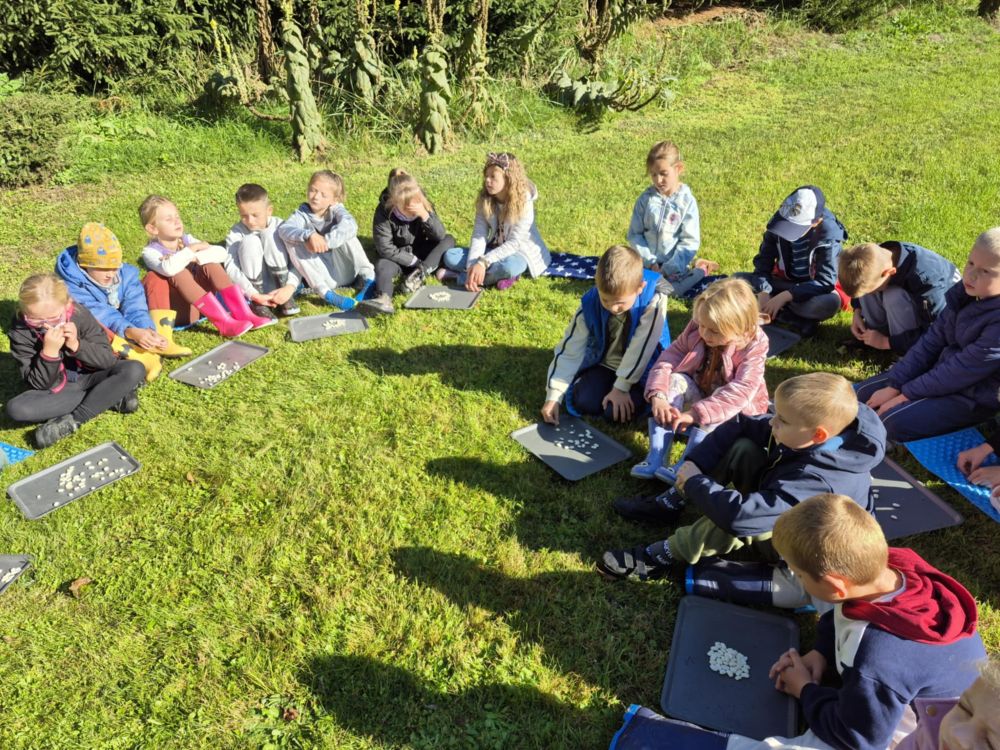 Klasa pierwsza została zaproszona do ogrodu Anielki, gdzie matematyka zamieniła się w prawdziwą przygodę. Utrwalaliśmy znajomość figur geometrycznych, ćwiczyliśmy orientację w przestrzeni i rozwiązywaliśmy zadania matematyczne… a to dopiero początek! Rodzice naszej uczennicy przygotowali dla dzieci zagadki i podchody, które sprawiły im mnóstwo radości. Na zakończenie czekał słodki poczęstunek w ogrodzie. To był dzień pełen nauki, uśmiechu i współpracy! Dziękujemy za gościnę i wspólne chwile!