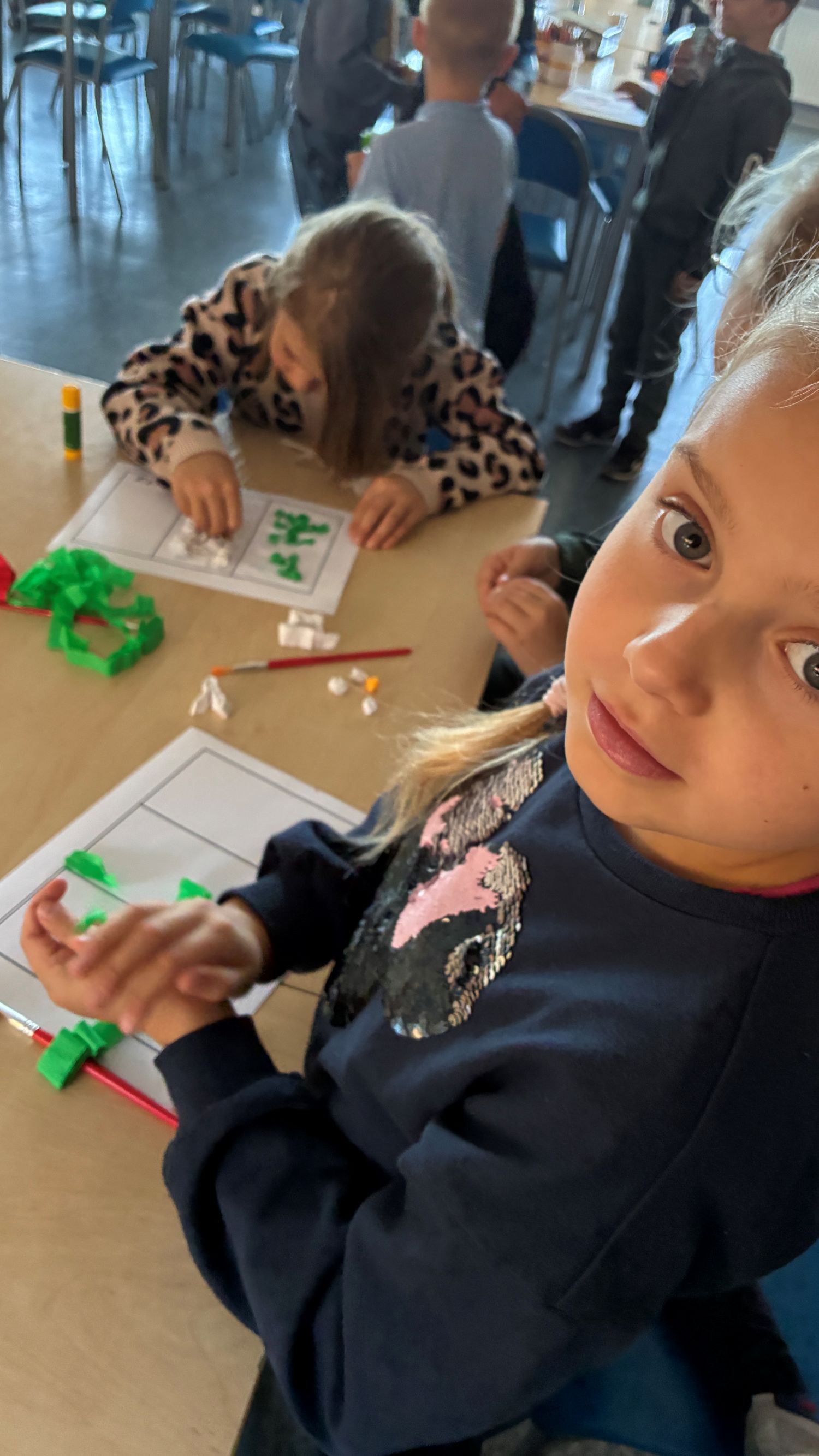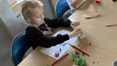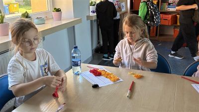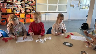 Europejski Dzień Języków świętowaliśmy także w naszej świetlicy szkolnej. Uczniowie mieli okazję połączyć naukę z twórczą zabawą – przygotowywali kolorowe flagi państw europejskich, które wyklejali z bibuły. Dzięki tej aktywności dzieci nie tylko rozwijały swoje zdolności manualne, ale również utrwalały wiedzę o różnych krajach Europy i ich symbolach narodowych. W świetlicy zrobiło się barwnie i radośnie, a wykonane przez uczniów prace pięknie wpisały się w obchody Europejskiego Dnia Języków w naszej szkole.