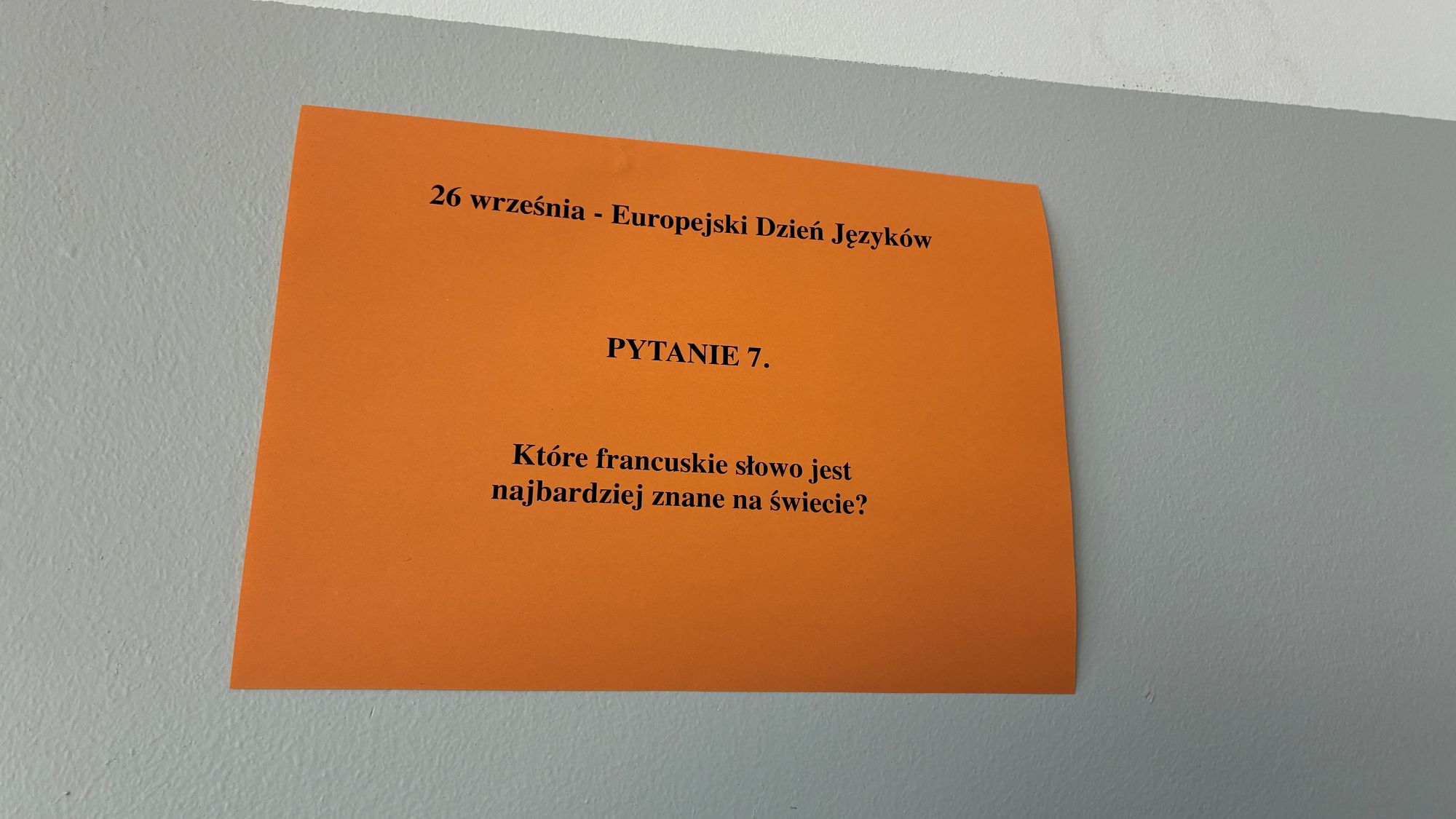 Na uczniów czeka również językowa zabawa – na korytarzach rozwieszone zostały pytania dotyczące języków i kultur, a zadaniem uczestników jest udzielanie poprawnych odpowiedzi. Karty odpowiedzi są do pobrania u pani Aliny. To świetna okazja, by sprawdzić swoją wiedzę i nauczyć się czegoś nowego w ciekawy sposób.