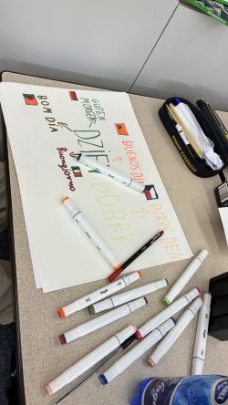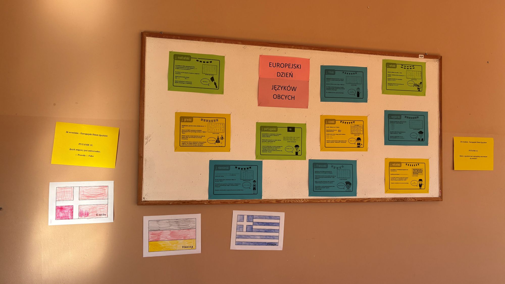 W naszej szkole trwa Europejski Tydzień Języków! Uczniowie podczas lekcji języka niemieckiego i angielskiego przygotowali plakaty z podstawowymi słowami w różnych językach europejskich, a także kolorowe flagi krajów Europy, które zdobią szkolne korytarze.