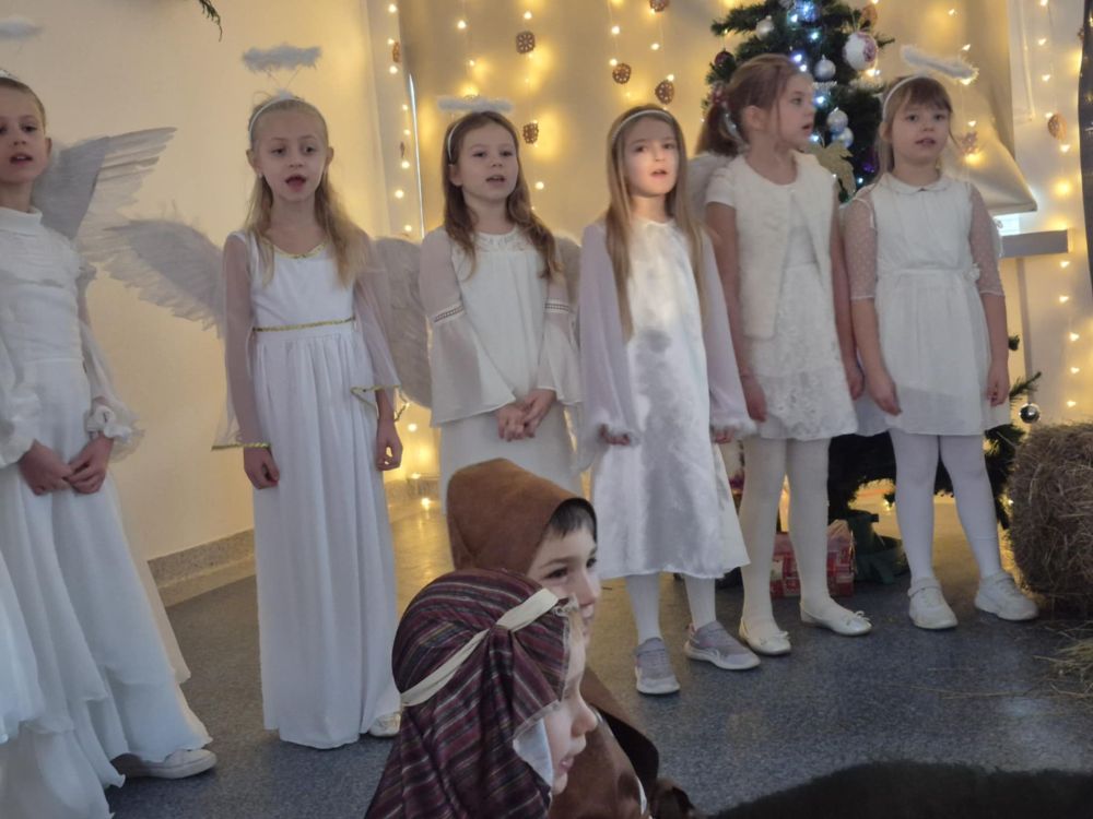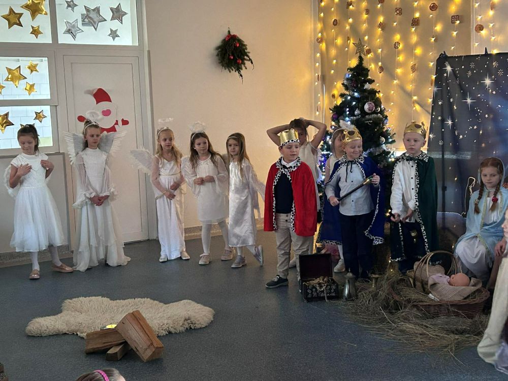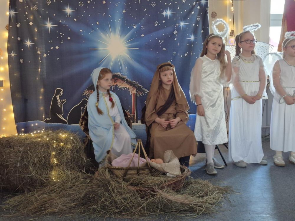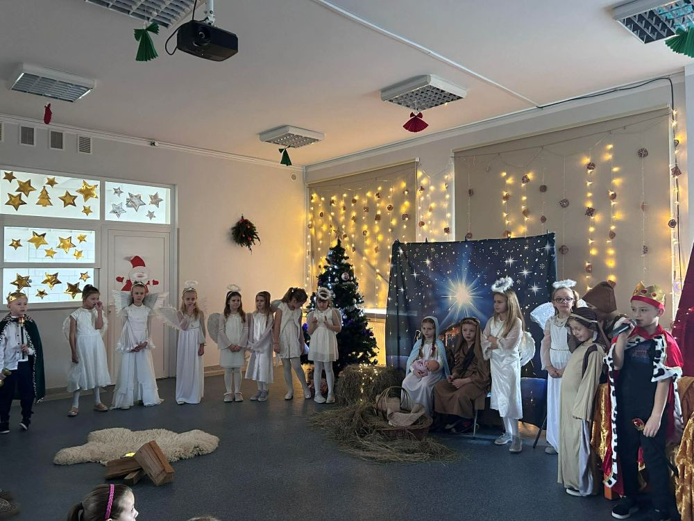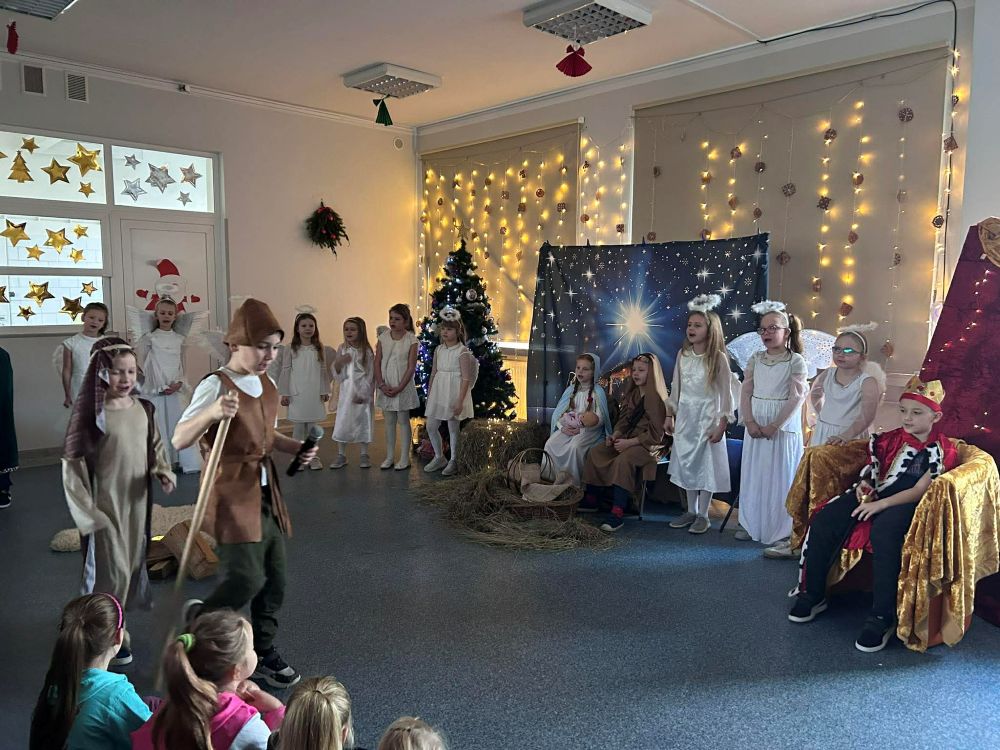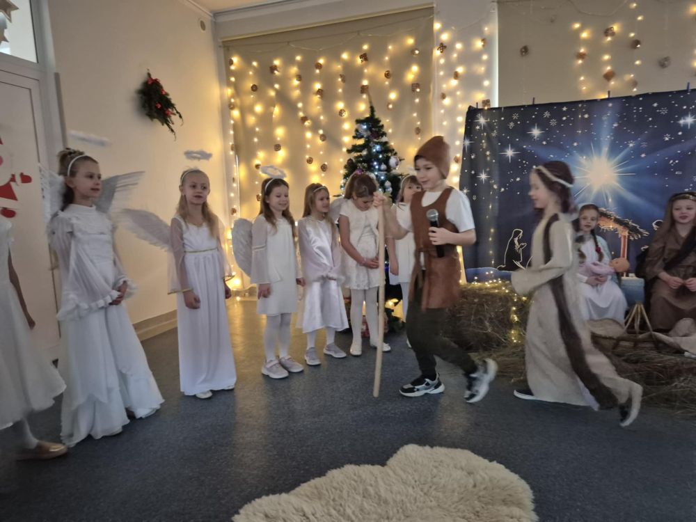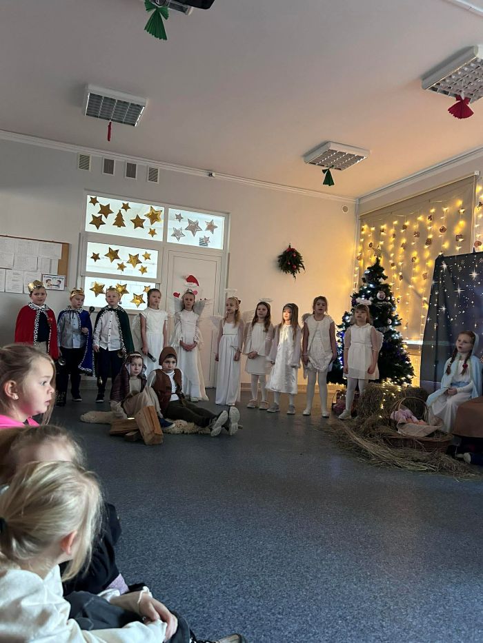 Pod takim tytułem uczniowie klasy pierwszej i drugiej przygotowali szkolne jasełka. Występując przed "cudowną" publicznością i śpiewając pastorałki wprowadzili wszystkich w świąteczny nastrój. Po jasełkach odbyło się, przy bogato zastawionych stołach, wspólne kolędowanie. W miłej atmosferze wszyscy śpiewali znane kolędy dzieląc się tym samym radością i świątecznym ciepłem.