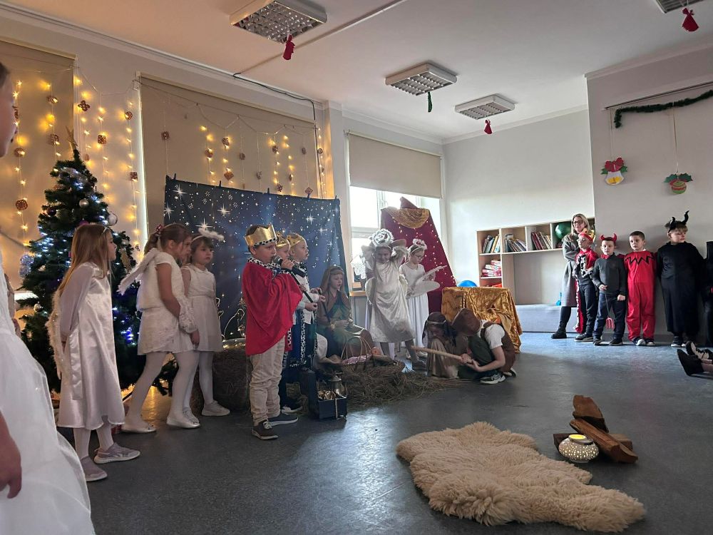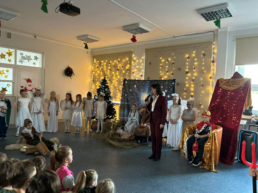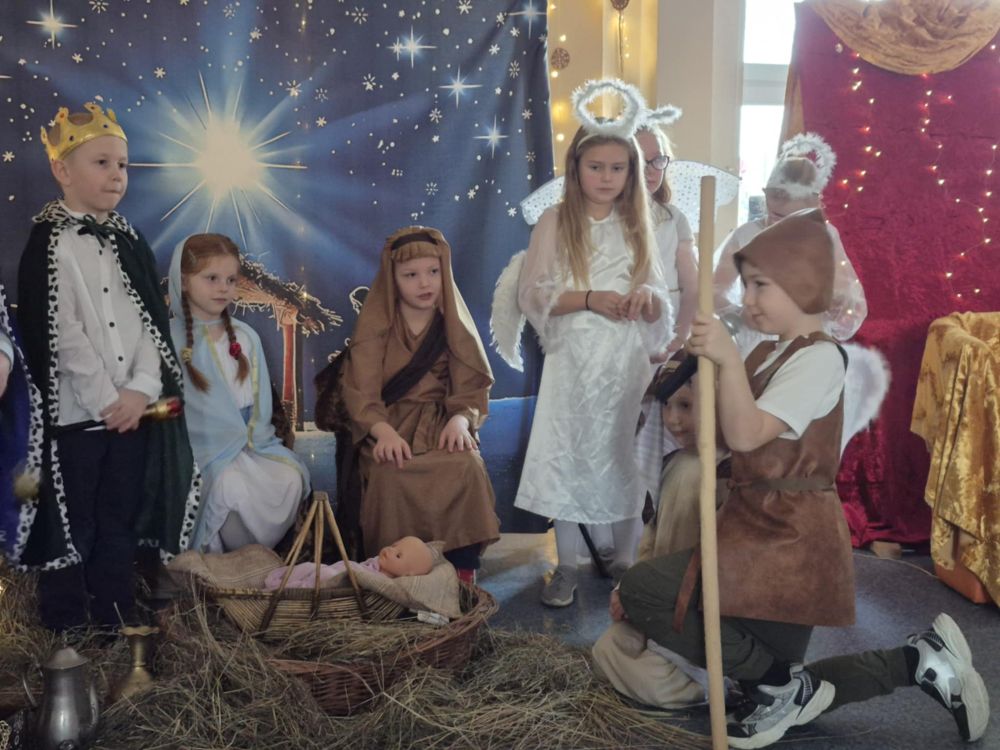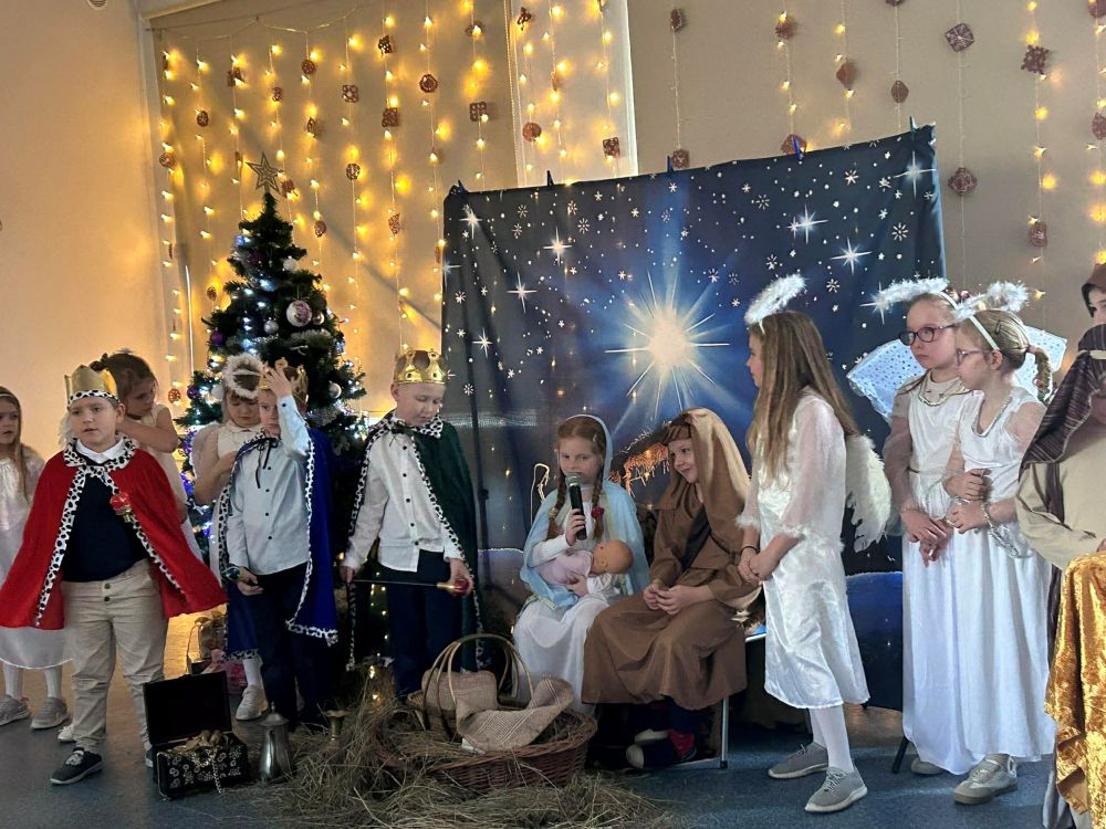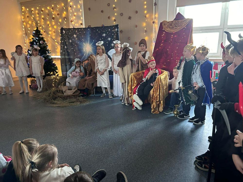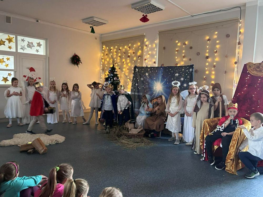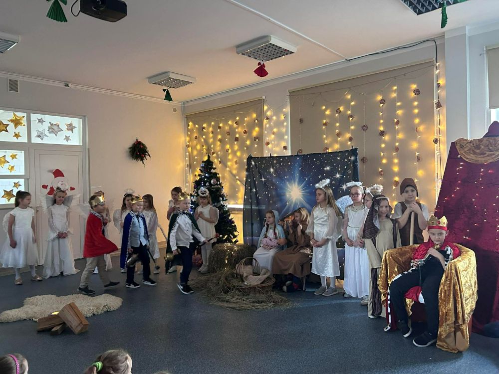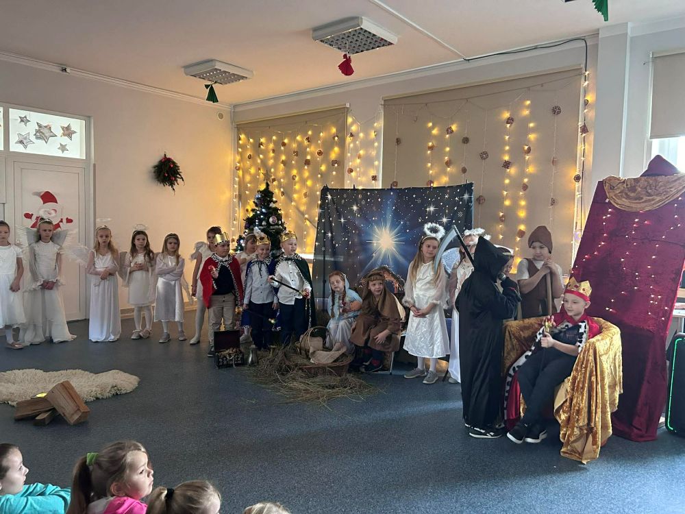 Pod takim tytułem uczniowie klasy pierwszej i drugiej przygotowali szkolne jasełka. Występując przed "cudowną" publicznością i śpiewając pastorałki wprowadzili wszystkich w świąteczny nastrój. Po jasełkach odbyło się, przy bogato zastawionych stołach, wspólne kolędowanie. W miłej atmosferze wszyscy śpiewali znane kolędy dzieląc się tym samym radością i świątecznym ciepłem.