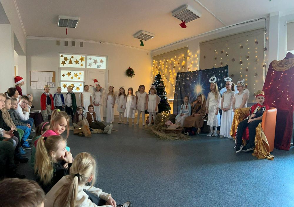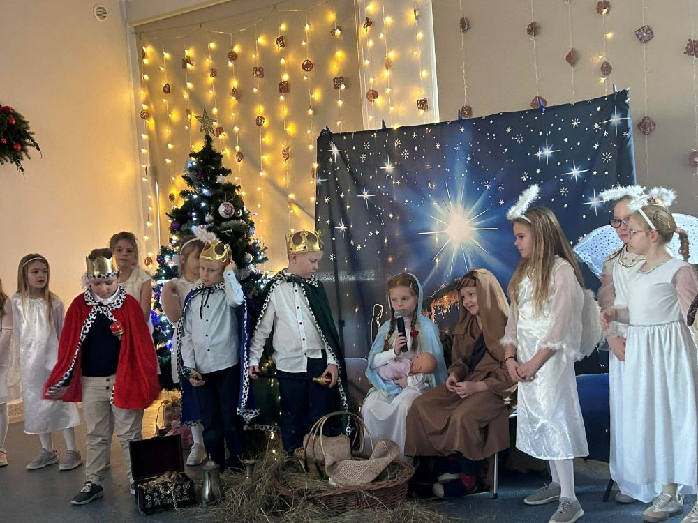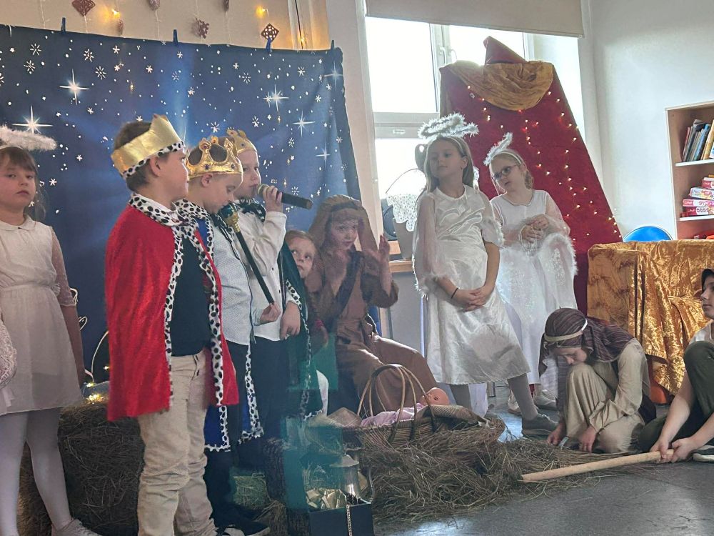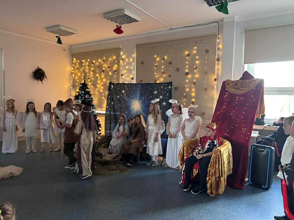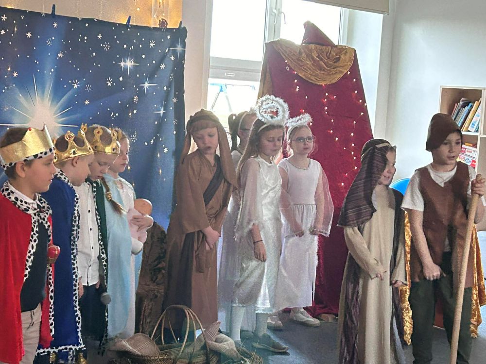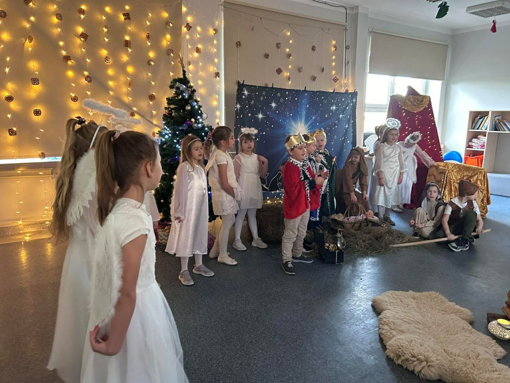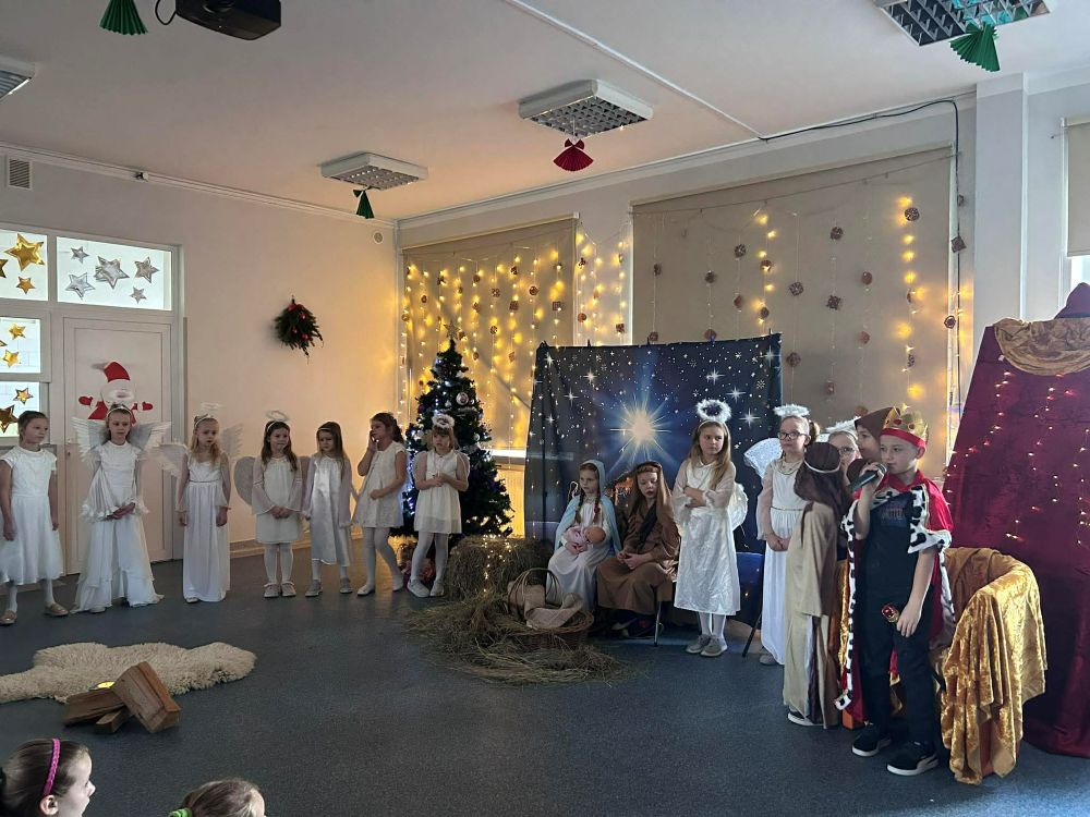Pod takim tytułem uczniowie klasy pierwszej i drugiej przygotowali szkolne jasełka. Występując przed "cudowną" publicznością i śpiewając pastorałki wprowadzili wszystkich w świąteczny nastrój. Po jasełkach odbyło się, przy bogato zastawionych stołach, wspólne kolędowanie. W miłej atmosferze wszyscy śpiewali znane kolędy dzieląc się tym samym radością i świątecznym ciepłem.