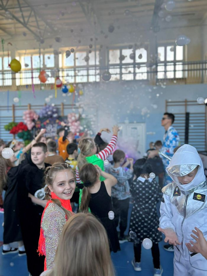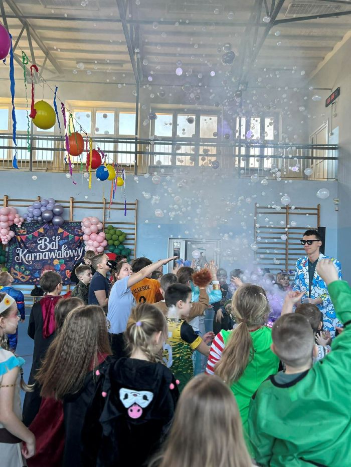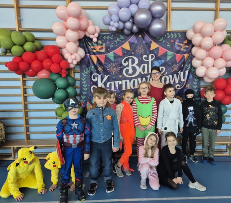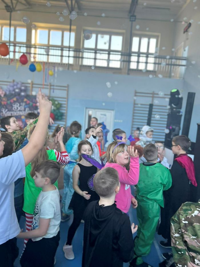 W dniu dzisiejszym, w naszej szkole, odbył się bal karnawałowy dla uczniów klas edukacji wczesnoszkolnej. Dzieci zaprezentowały się w pięknych, kolorowych i kreatywnych strojach. Podczas zabawy nie zabrakło tańców, konkursów oraz wspólnych zabaw przy muzyce. Serdeczne podziękowania dla Rady Rodziców za wsparcie, dzięki któremu bal dla każdego ucznia był pełen radości, uśmiechu i niezapomnianych chwil. Ogromne podziękowania także dla Państwa Harbacewiczów za balony, które sprawiły, że sala wyglądała jak zaczarowana kraina pełna kolorów.
