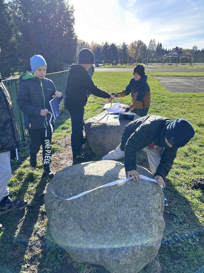 Uczniowie klasy 3a wybrali się na zajęcia plenerowe z metrówkami i centymetrami krawieckimi. Mierzyli wszystko co wg nich było godne zainteresowania, niektórzy mierzyli ławki, kamienie, huśtawki, a niektórzy swojego kolegę, czy koleżankę. Pomiary były zapisywane, a po powrocie do klasy bardzo skrupulatnie analizowane. Dzięki wspólnej współpracy dzieci mierzyły długie przedmioty, a wzajemna pomoc doskonale umacniała dobre relacje koleżeńskie.