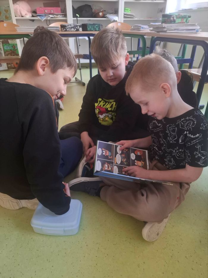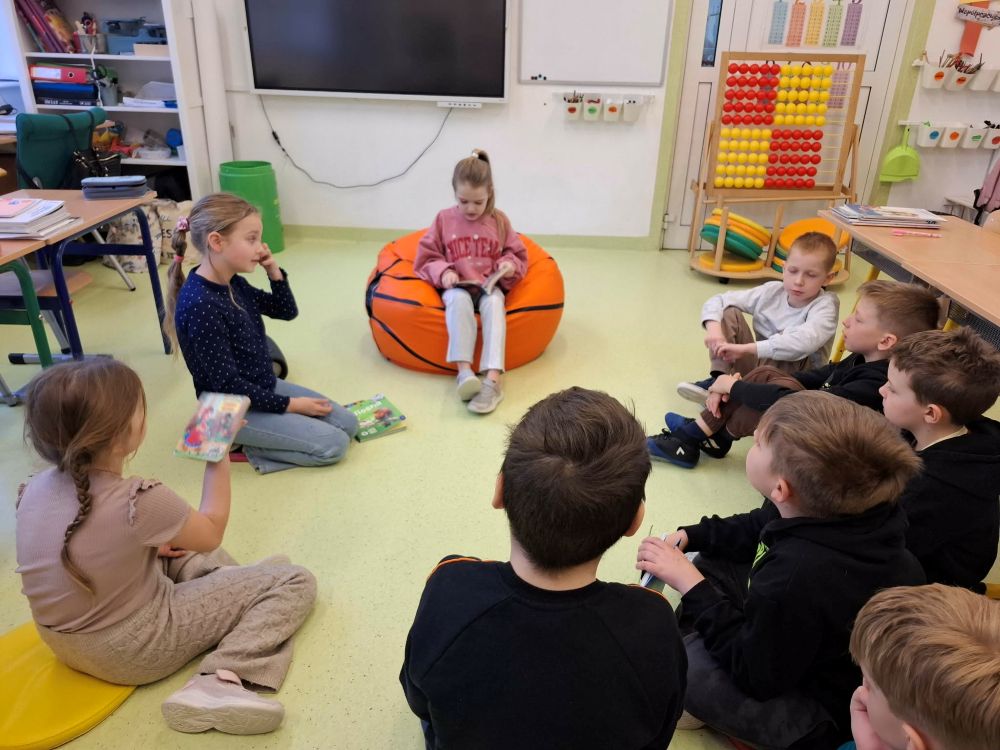 Na dzisiejszych zajęciach drugoklasiści doskonalili umiejętność wystąpień publicznych. Podczas takiej aktywności uczniowie w sposób interesujący i ciekawy przedstawili fragment tekstu zwracając uwagę na temat i bohaterów książki. Na zajęciach drugoklasiści: