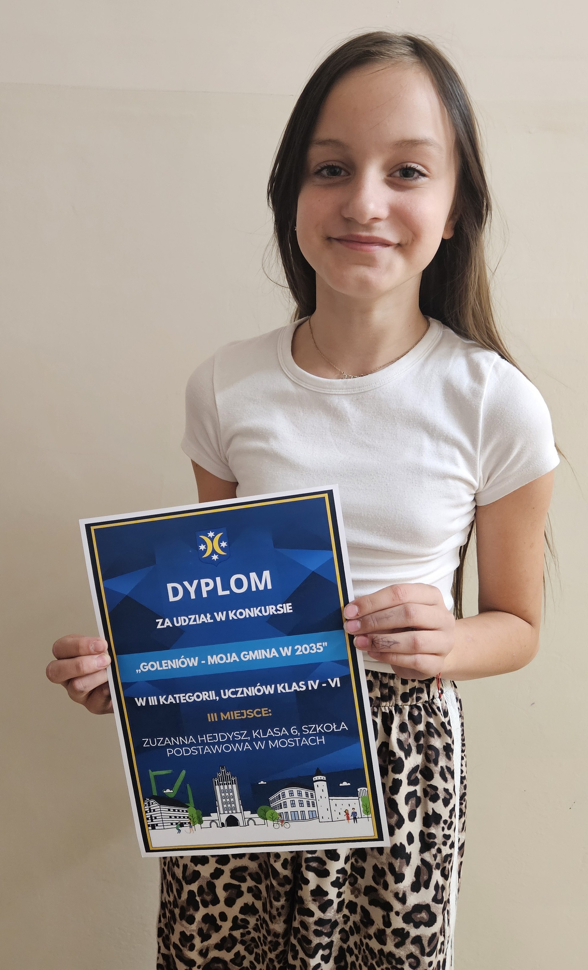 W ramach konkursu „Goleniów - Moja Gmina w 2035” dnia 7 października w sali konferencyjnej Urzędu Gminy i Miasta Goleniów, zostały wręczone wyróżnienia autorom prac plastycznych. Wśród laureatów znalazły się dwie nasze uczennice: Lena Jaskólska i Zuzanna Hejdysz, które zajęły odpowiednio II i III miejsce w kategorii klas IV-VI. Dyplomy oraz upominki wręczył zastępca Burmistrza Gminy Goleniów Piotr Wolny wraz z przedstawicielami Fundacji Rozwoju Demokracji Lokalnej im. Jerzego Regulskiego. Pomysły młodych mieszkańców stały się inspiracją do dyskusji o przyszłości Goleniowa. Gratulujemy dziewczętom sukcesu i życzymy kolejnych artystycznych osiągnięć!