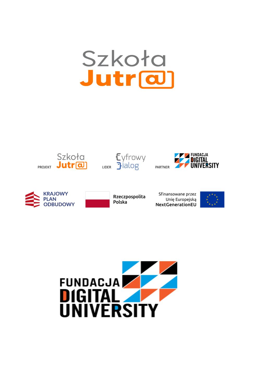 Fundacja Digital University oraz Cyfrowy Dialog od wielu lat wspólnie rozwijają programy wspierające edukację cyfrową w polskich szkołach. Cyfrowy Dialog, jako lider projektu „Szkoła Jutra II”, specjalizuje się w nowoczesnych metodach dydaktycznych, edukacji medialnej i upowszechnianiu kompetencji cyfrowych wśród nauczycieli i uczniów. Realizuje liczne inicjatywy ogólnopolskie, szkolenia i programy wspierające rozwój edukatorów. Fundacja Digital University, jako Partner Projektu, dostarcza szerokie zaplecze eksperckie w obszarze nowych technologii, kompetencji przyszłości i transformacji cyfrowej. Fundacja prowadzi m.in. programy Uniwersytet Sukcesu, Nowa Ja, Be.Net, Be.Eco, a także liczne szkolenia, wydarzenia i projekty skierowane do szkół i środowisk edukacyjnych.