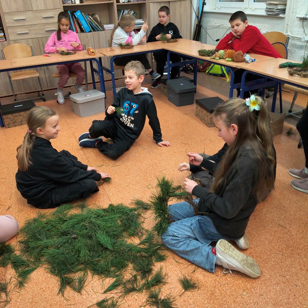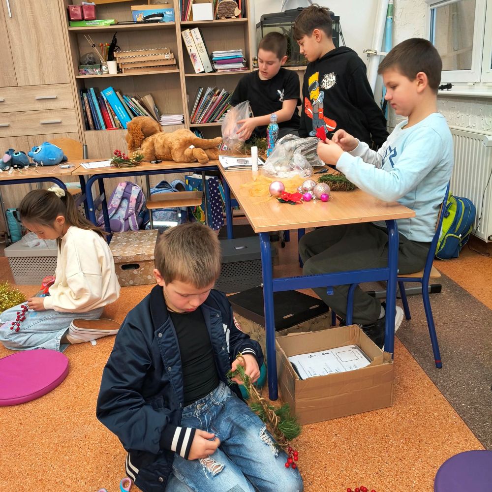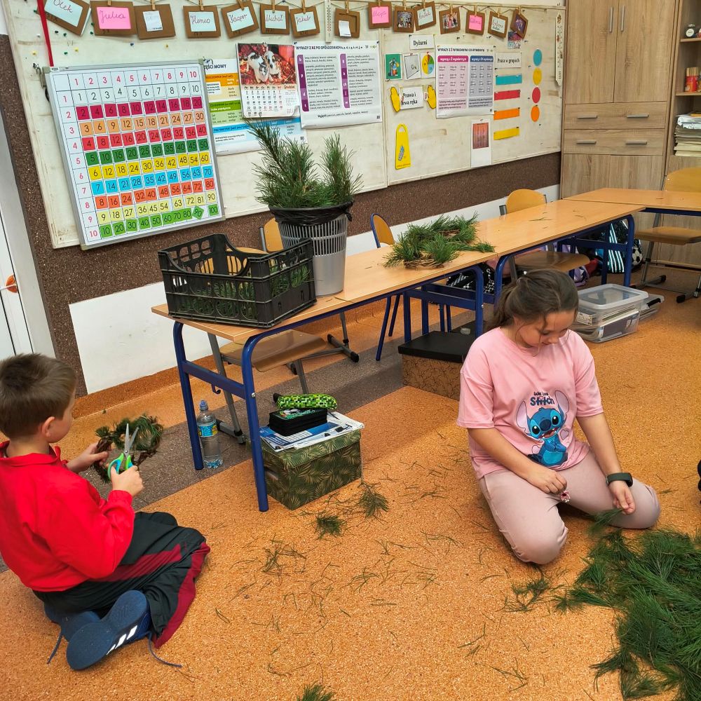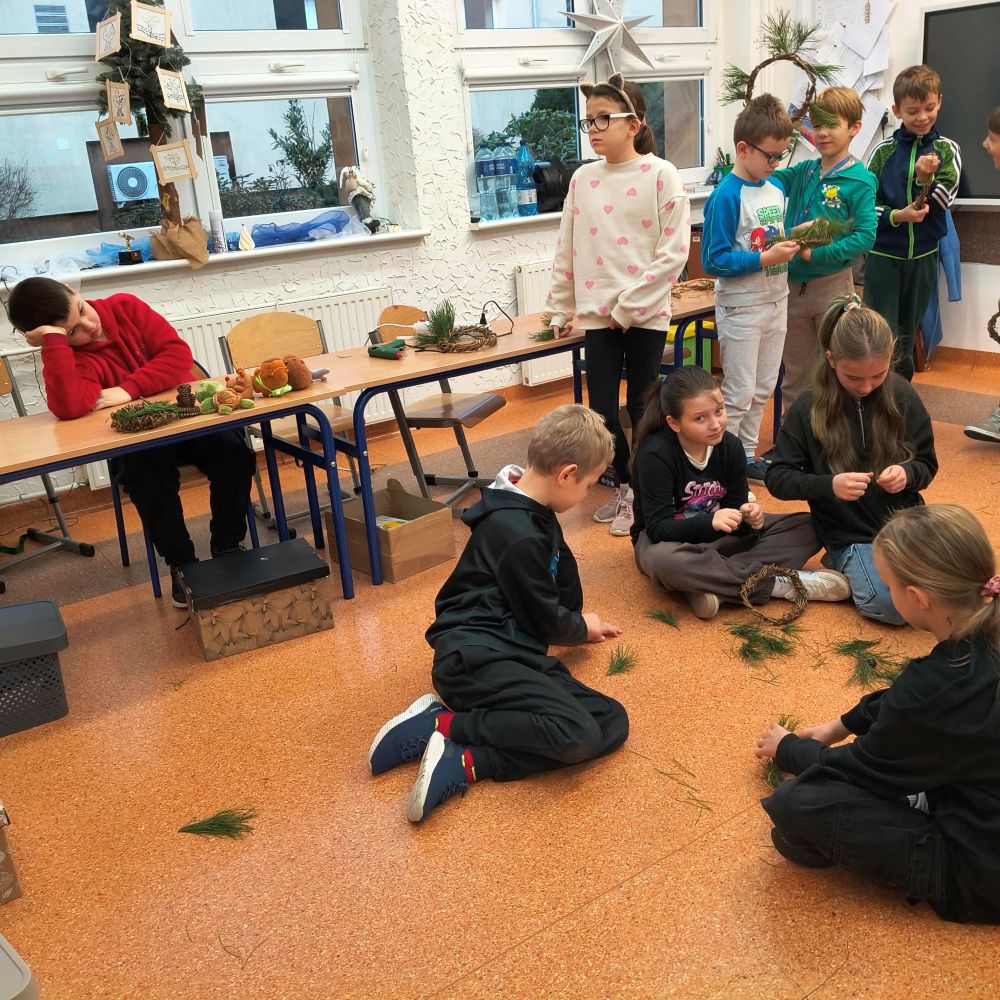 Z okazji Świąt Bożego Narodzenia uczniowie klasy 3B wykonali świąteczne wianki. Nie było to łatwe zadanie. Korzystając z materiałów naturalnych najpierw, każdy uplótł wianek. Następnie przyozdobił gałązkami z drzew iglastych. Kolejnego dnia odbyło się dekorowanie ozdobami świątecznymi. Pracy było dużo, ale efekt zdumiewający.