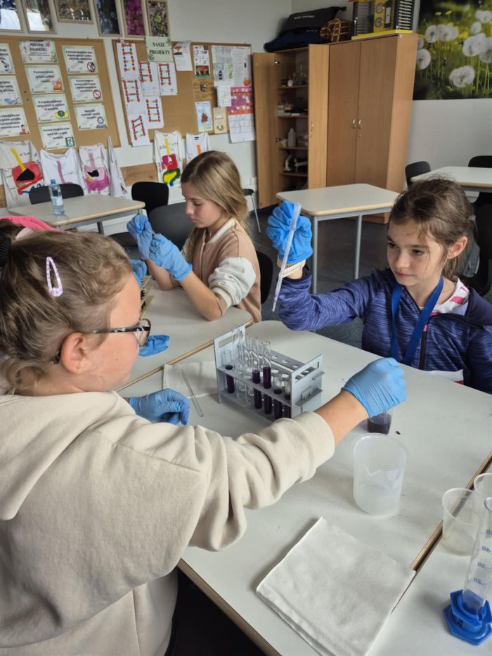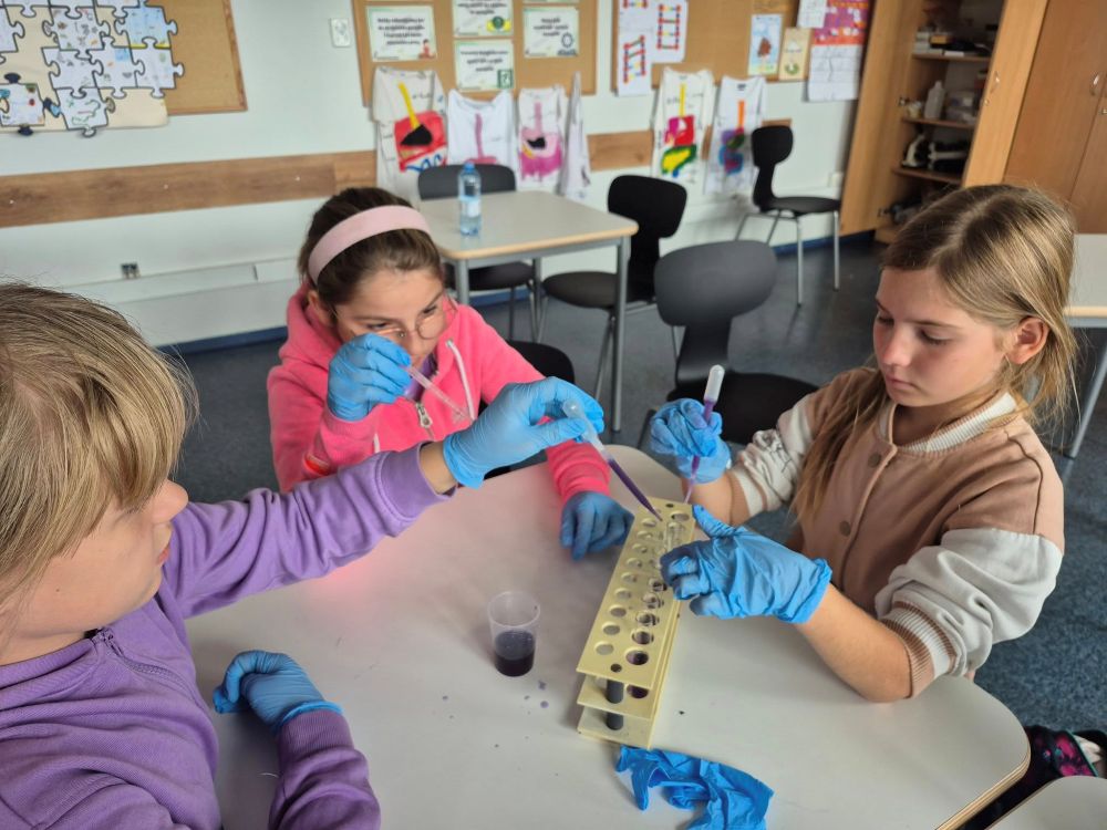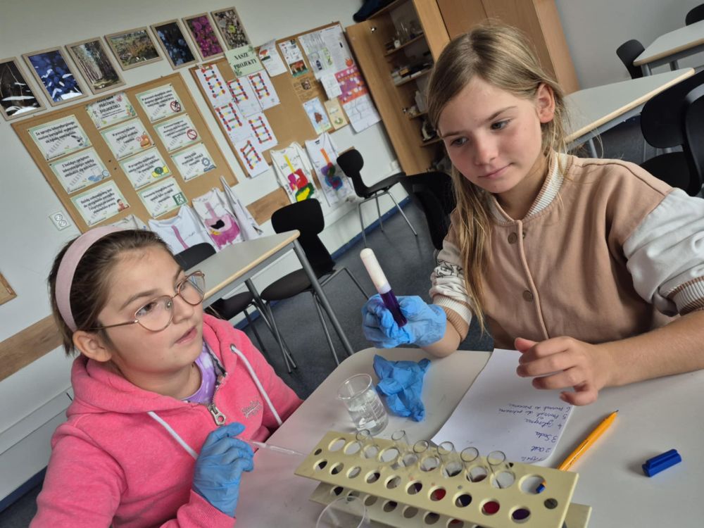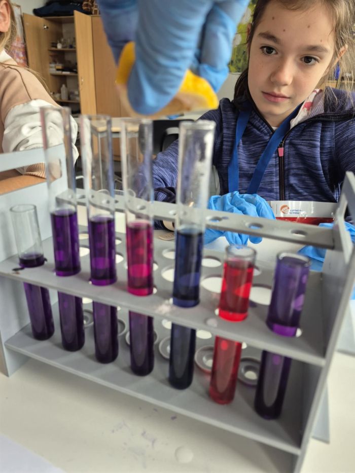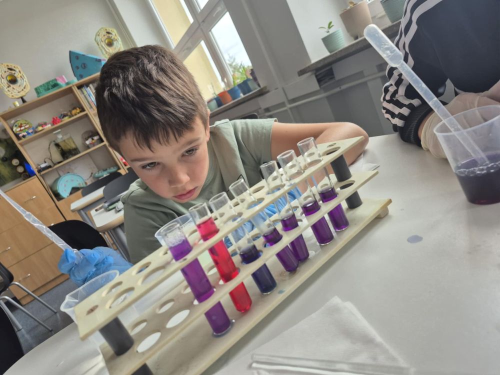 z wykorzystaniem naturalnego wskaźnika, jakim jest sok z czerwonej kapusty. Uczniowie badali kwasowość i zasadowość różnych substancji, takich jak ocet, sok z cytryny, soda czy proszek do pieczenia. Efektem były kolorowe probówki, które pokazały, że nauka może być fascynującą zabawą! To dopiero początek naszej przygody z biologią i turystyką – przed nami wiele eksperymentów i odkryć.