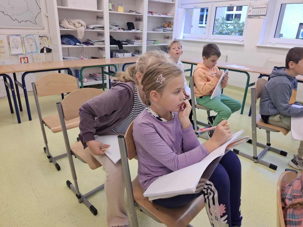 W dniu dzisiejszym drugoklasiści sprawdzali swoją wiedzę z zakresu znajomości zasad ortograficznych. Dlaczego SZEPTANE DYKTANDO? Ponieważ poprzez zabawę dydaktyczną uczniowie: