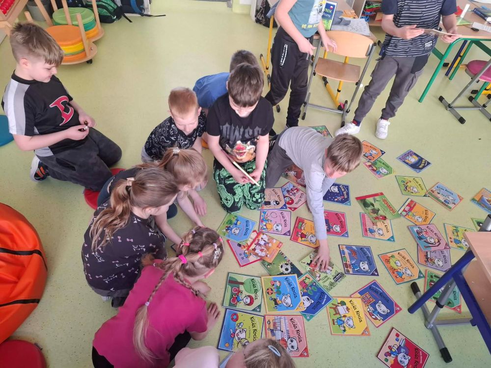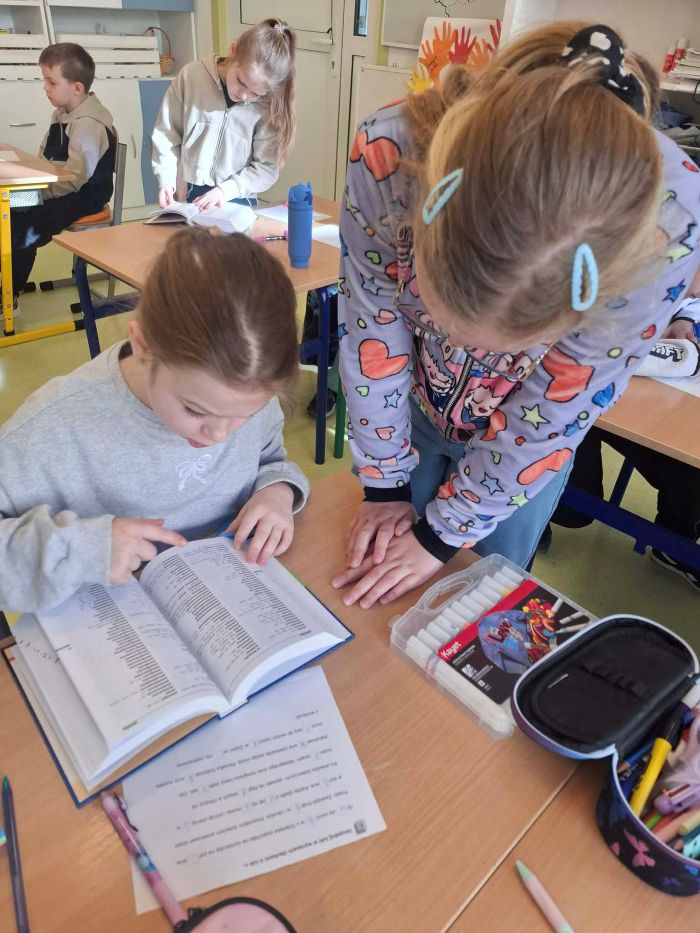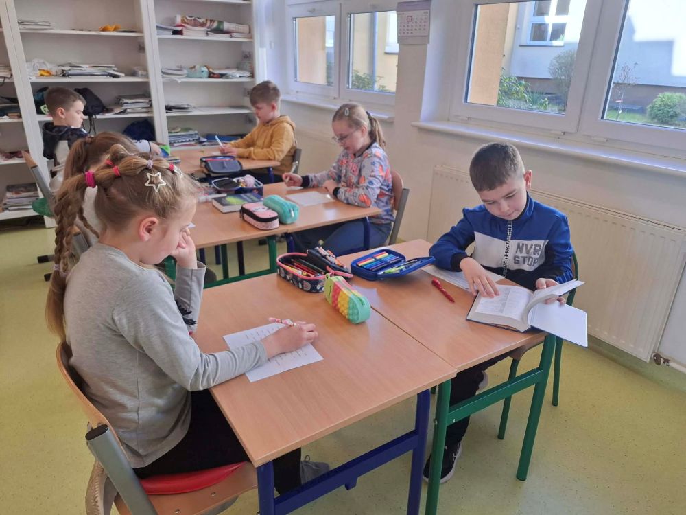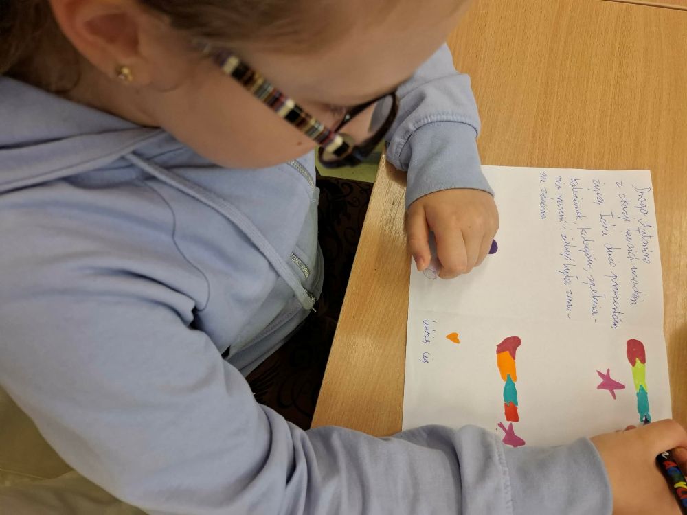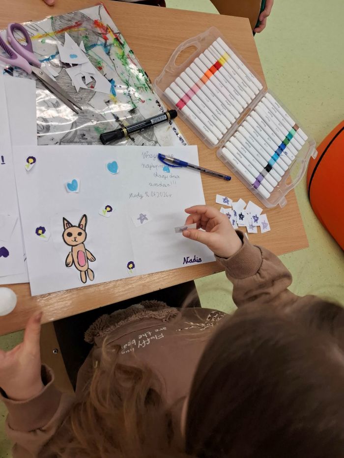 Od początku swojej szkolnej przygody drugoklasiści pracują zgodnie z zasadami Oceniania Kształtującego. Podczas ostatnich zajęć z edukacji wczesnoszkolnej uczniowie, współpracując ze sobą, realizowali zadania zawarte w celu lekcji oraz kryterium sukcesu. Najpierw rozwijali swoje umiejętności czytelnicze pracując z wybraną przez siebie książką. Dzieci czytały fragmenty tekstów, a następnie dzieliły się spostrzeżeniami na jej temat. Następnie uczniowie, pracując w parach, utrwalali zasady ortograficzne - poprzez pracę ze słownikiem ortograficznym uczyli się wyszukiwać potrzebne wyrazy. Ostatnim elementem było tworzenie urodzinowej kartki z życzeniami. Wszyscy przypomnieli sobie zasady pisowni i formułowania życzeń zwracając szczególną uwagę na poprawność językową i ortograficzną.