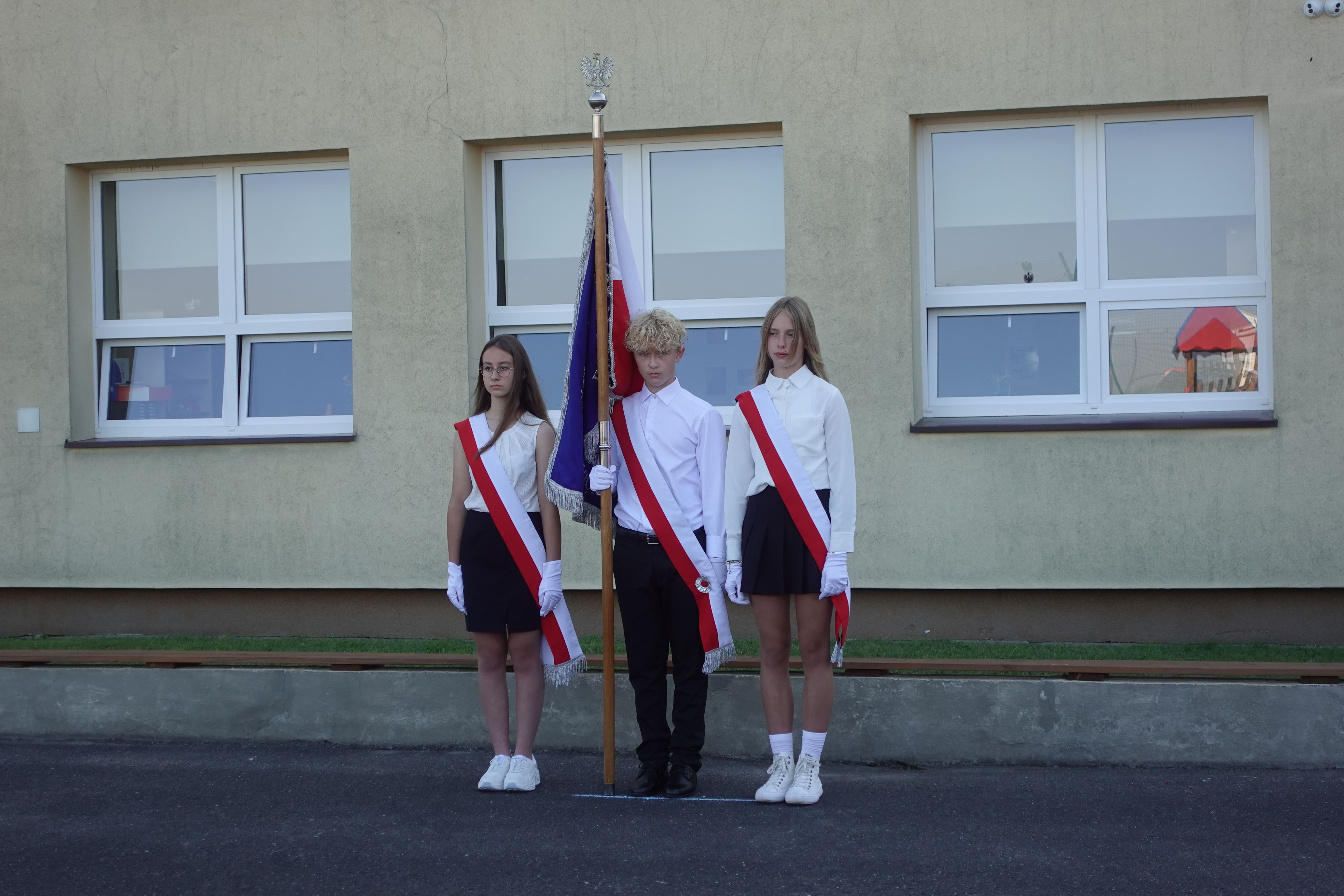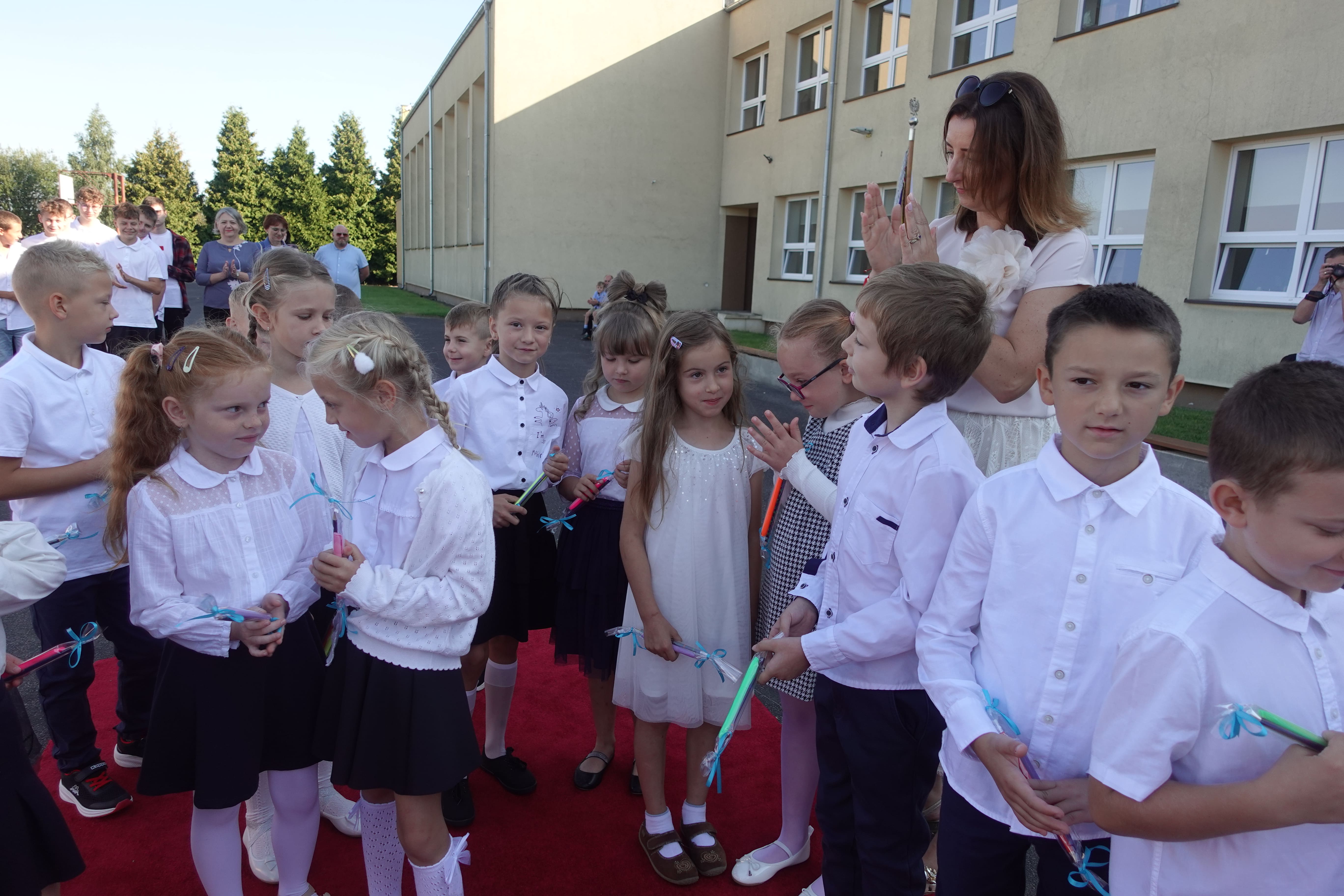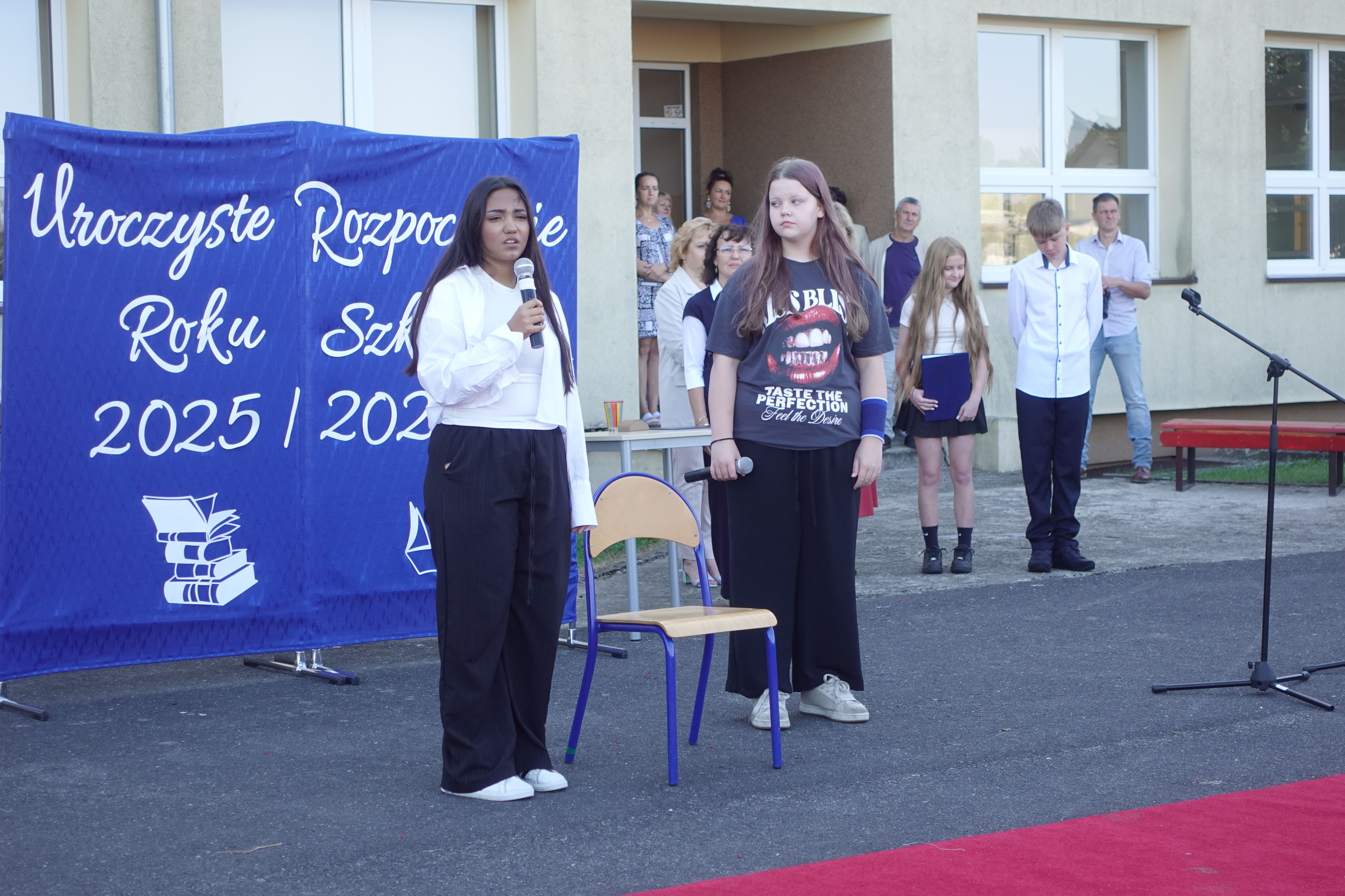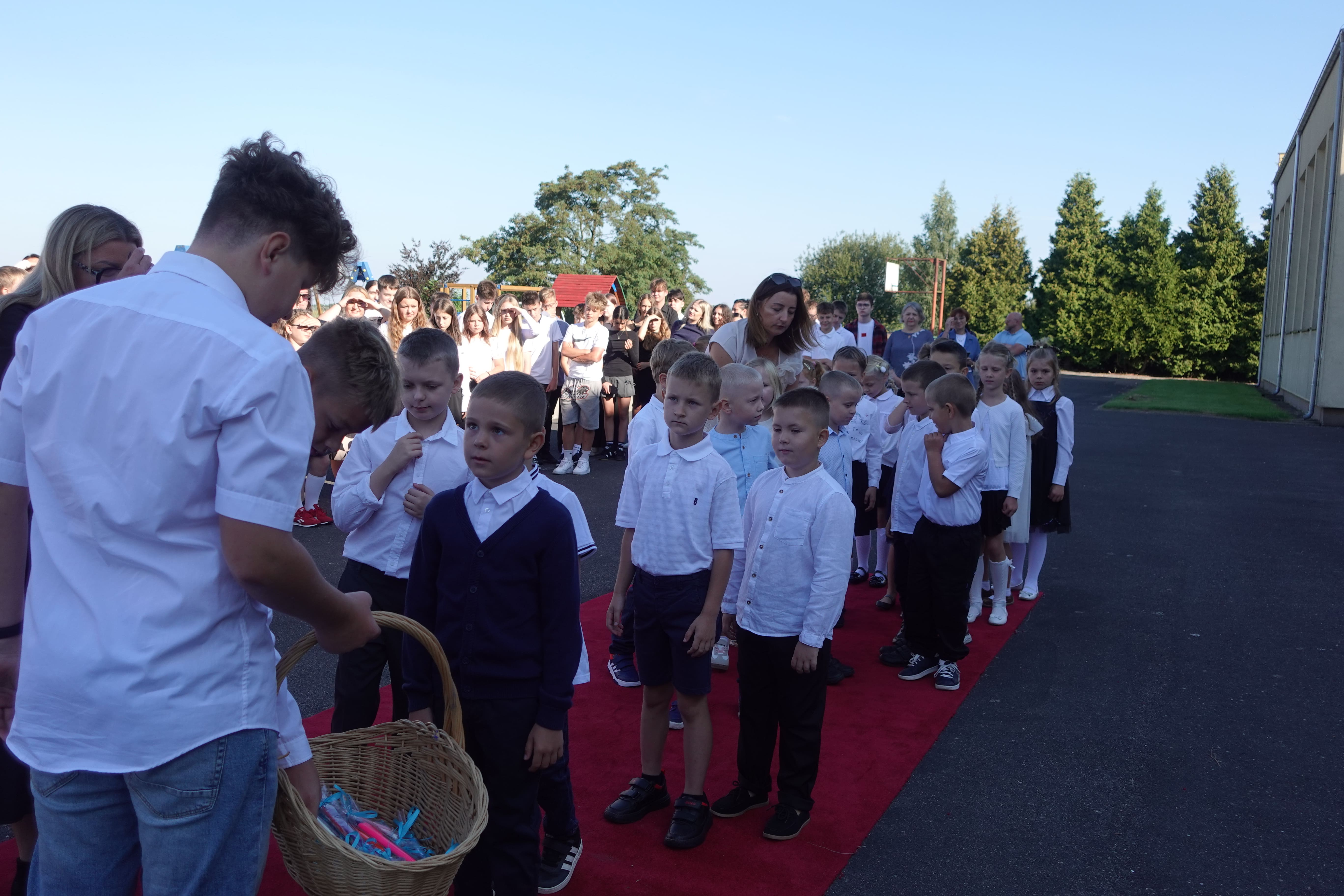 A jak rozpoczęliśmy nowy rok szkolny? Pani dyrektor powitała wszystkich, przedstawiła uczniów z pocztu sztandarowego, nowych „apelowych” konferansjerów, nowych nauczycieli, nową klasę pierwszą. Mamy nadzieję, że sukcesy, których wszystkim życzyła pani dyrektor, zostaną osiągnięte. Najmłodsi uczniowie naszej Szkoły tradycyjnie wystąpili na „czerwonym dywanie” i odebrali niespodzianki od swoich starszych kolegów. Występ dziewczyn z klasy ósmej przypomniał, że każdy z nas jest Kimś: Kimś ważnym, Kimś, kogo należy szanować, komu warto pomóc, do kogo trzeba wyciągnąć przyjacielską dłoń.