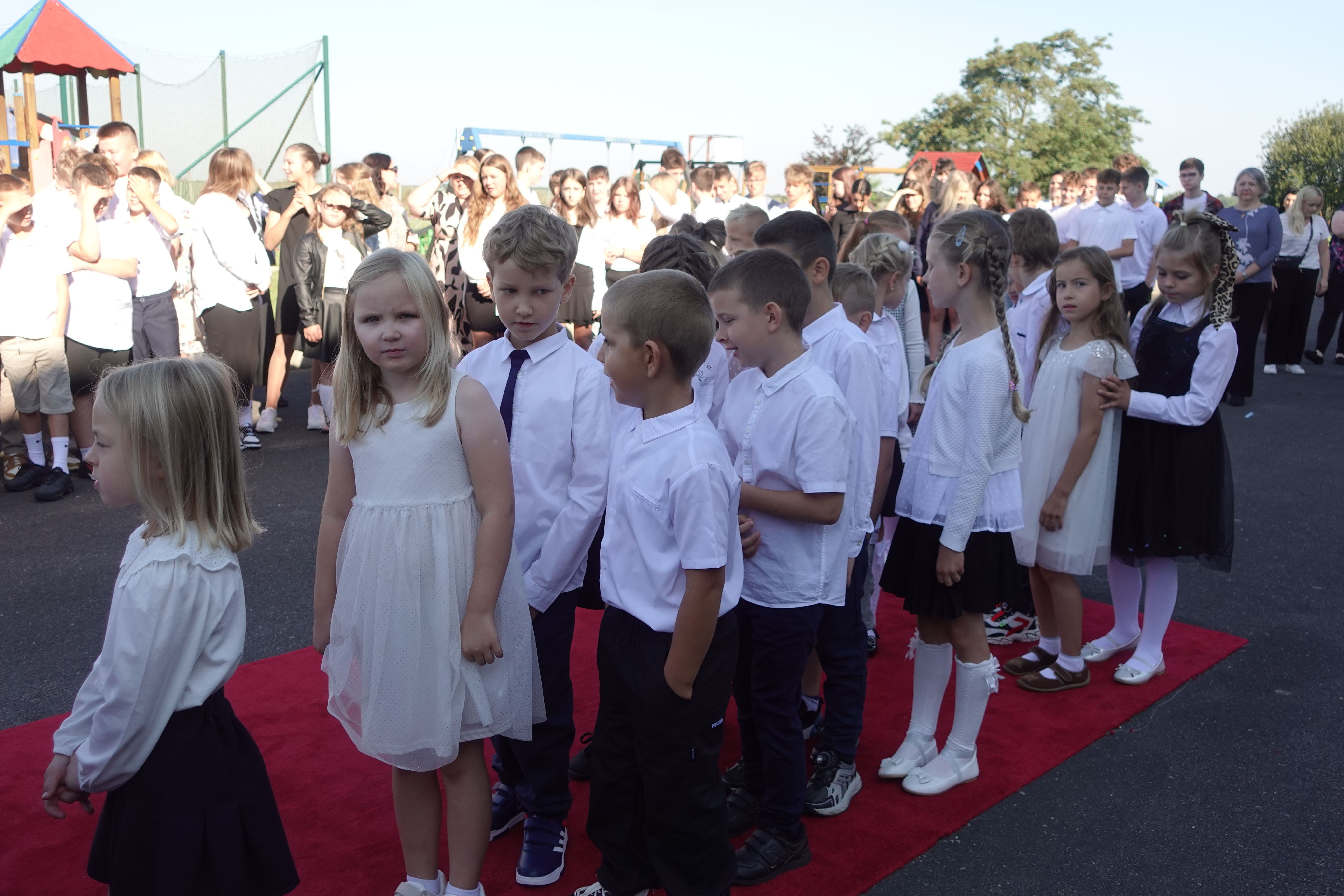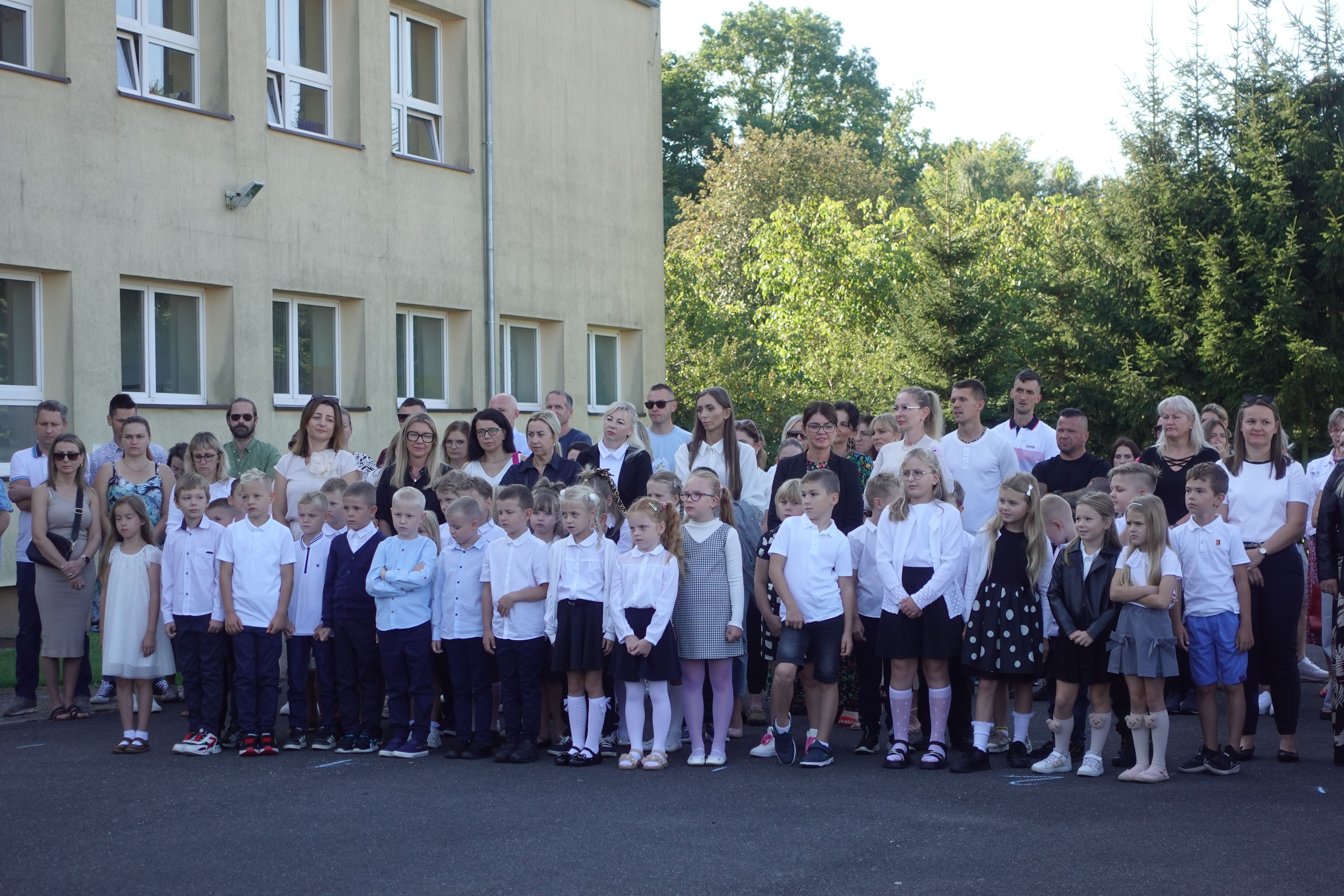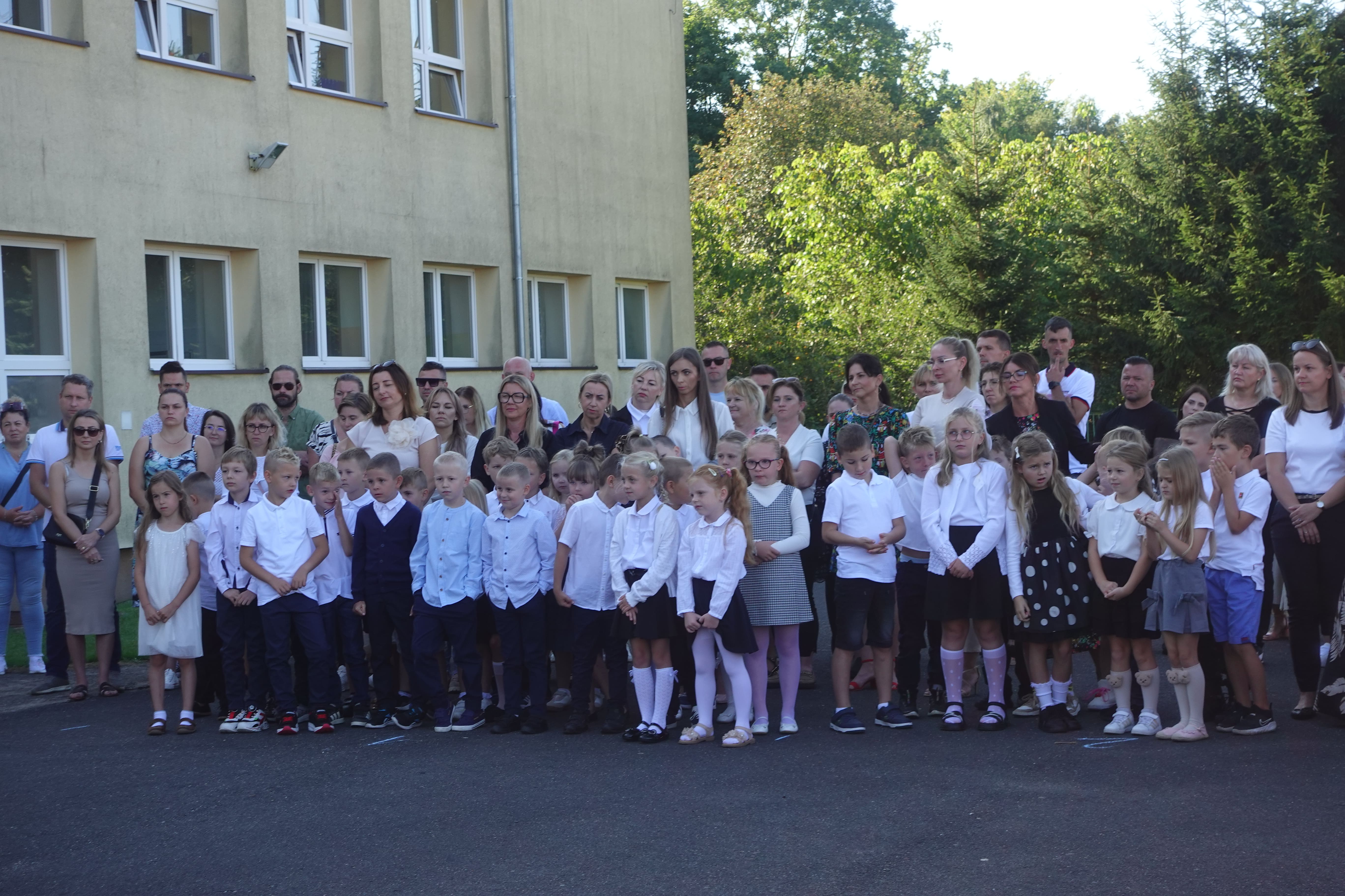 A jak rozpoczęliśmy nowy rok szkolny? Pani dyrektor powitała wszystkich, przedstawiła uczniów z pocztu sztandarowego, nowych „apelowych” konferansjerów, nowych nauczycieli, nową klasę pierwszą. Mamy nadzieję, że sukcesy, których wszystkim życzyła pani dyrektor, zostaną osiągnięte. Najmłodsi uczniowie naszej Szkoły tradycyjnie wystąpili na „czerwonym dywanie” i odebrali niespodzianki od swoich starszych kolegów. Występ dziewczyn z klasy ósmej przypomniał, że każdy z nas jest Kimś: Kimś ważnym, Kimś, kogo należy szanować, komu warto pomóc, do kogo trzeba wyciągnąć przyjacielską dłoń.