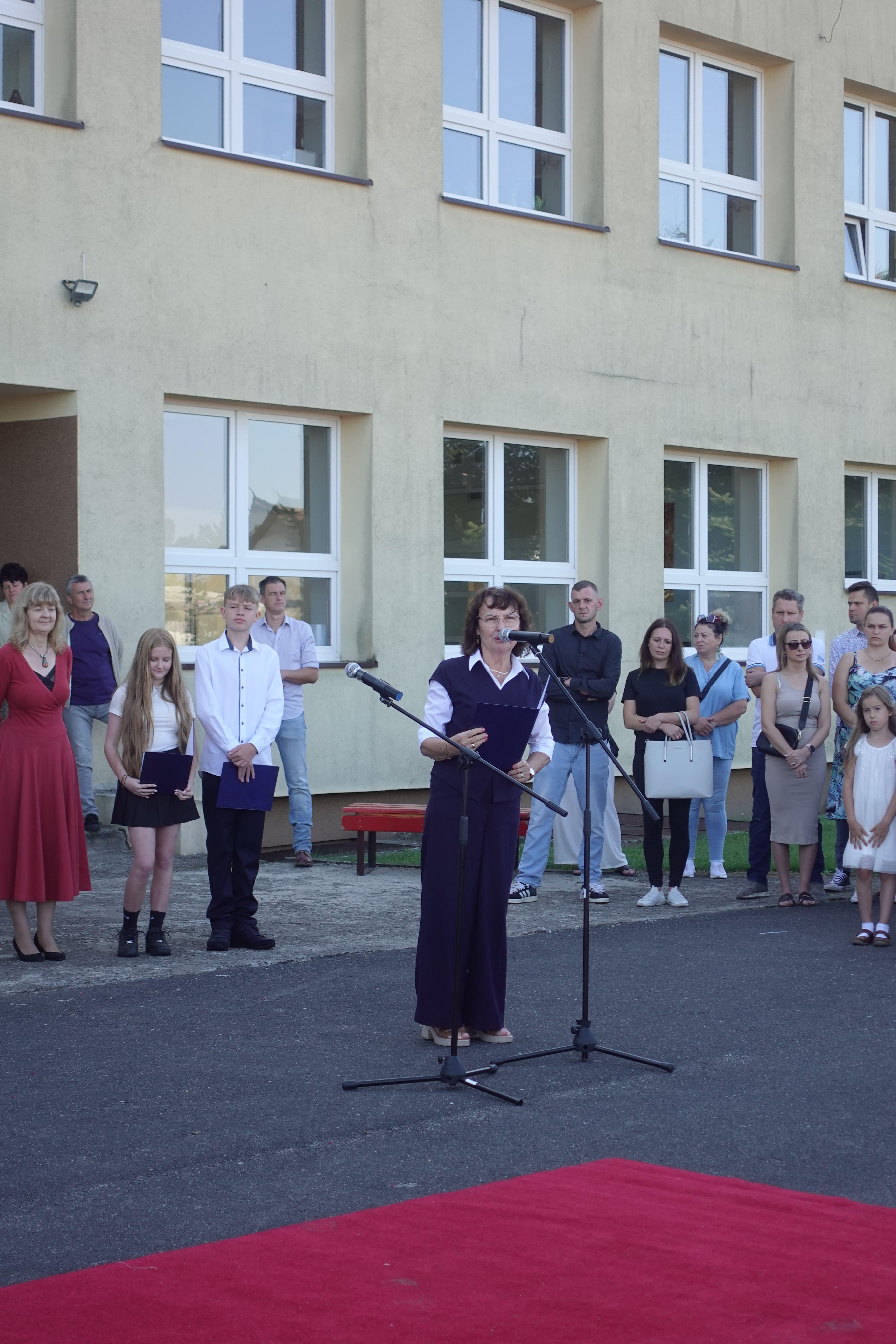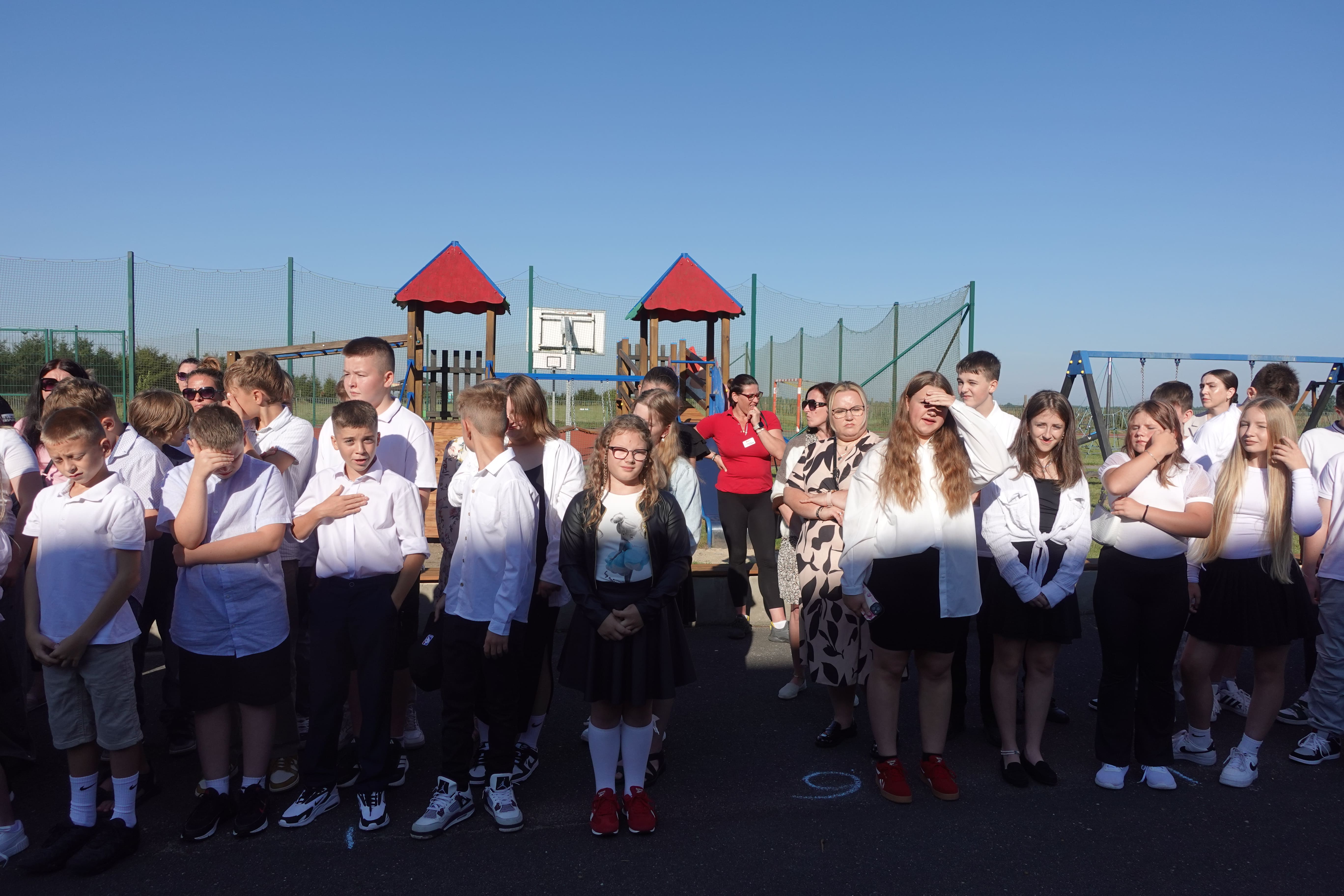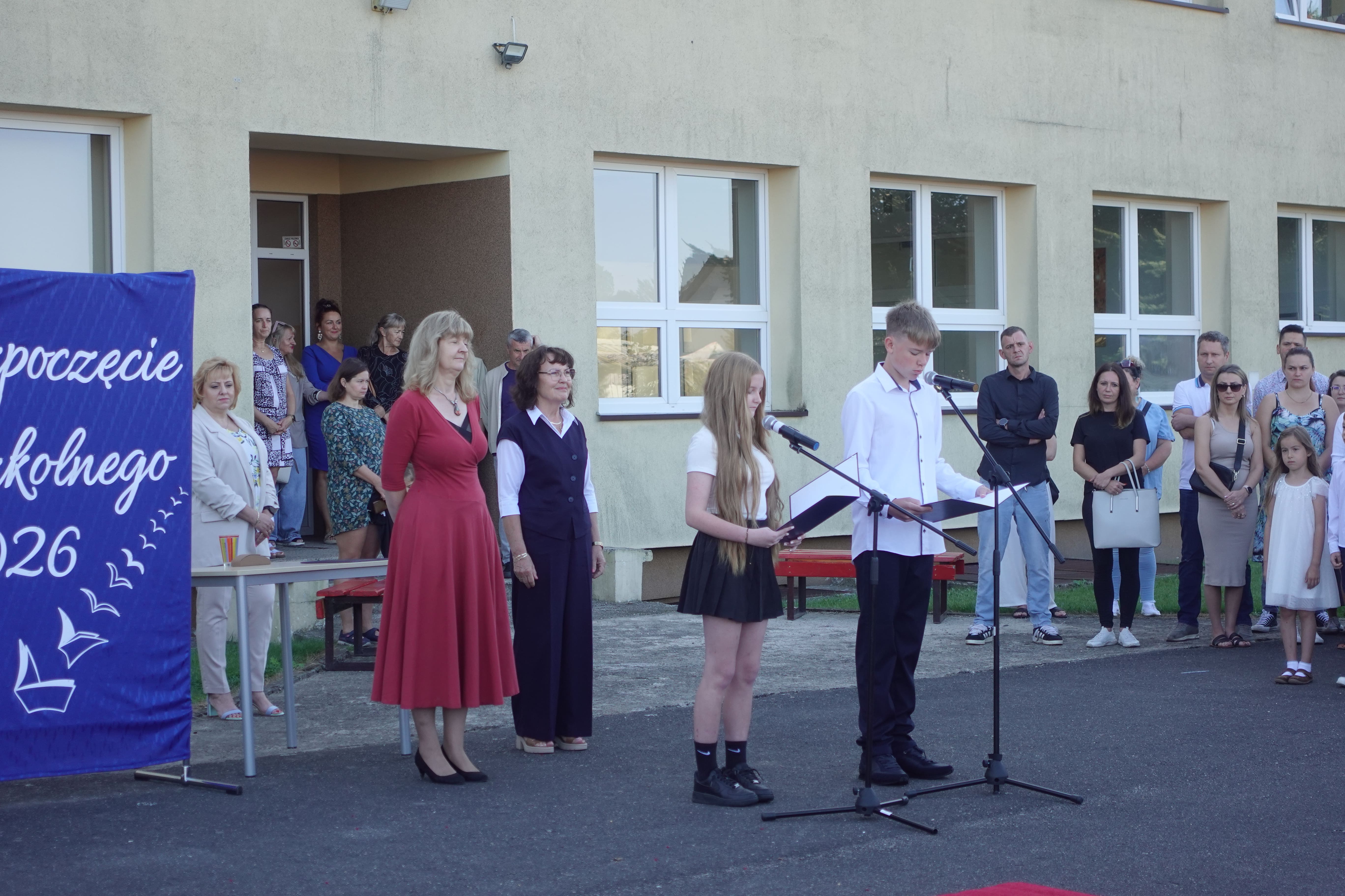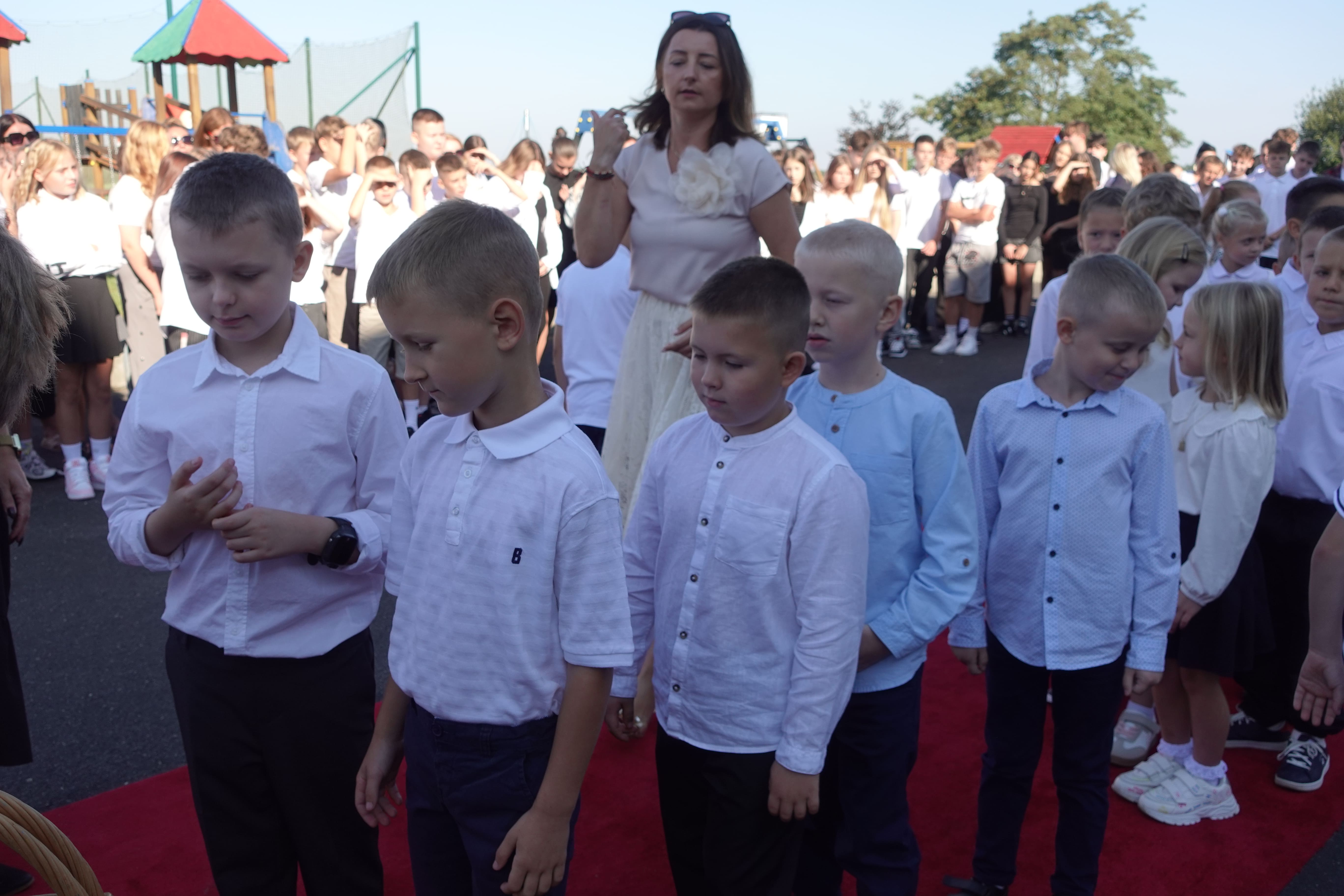 A jak rozpoczęliśmy nowy rok szkolny? Pani dyrektor powitała wszystkich, przedstawiła uczniów z pocztu sztandarowego, nowych „apelowych” konferansjerów, nowych nauczycieli, nową klasę pierwszą. Mamy nadzieję, że sukcesy, których wszystkim życzyła pani dyrektor, zostaną osiągnięte. Najmłodsi uczniowie naszej Szkoły tradycyjnie wystąpili na „czerwonym dywanie” i odebrali niespodzianki od swoich starszych kolegów. Występ dziewczyn z klasy ósmej przypomniał, że każdy z nas jest Kimś: Kimś ważnym, Kimś, kogo należy szanować, komu warto pomóc, do kogo trzeba wyciągnąć przyjacielską dłoń.